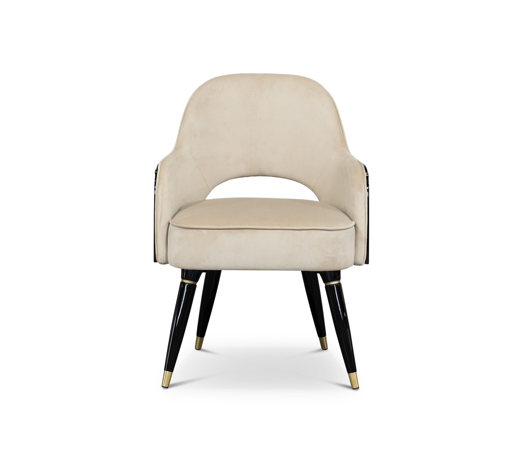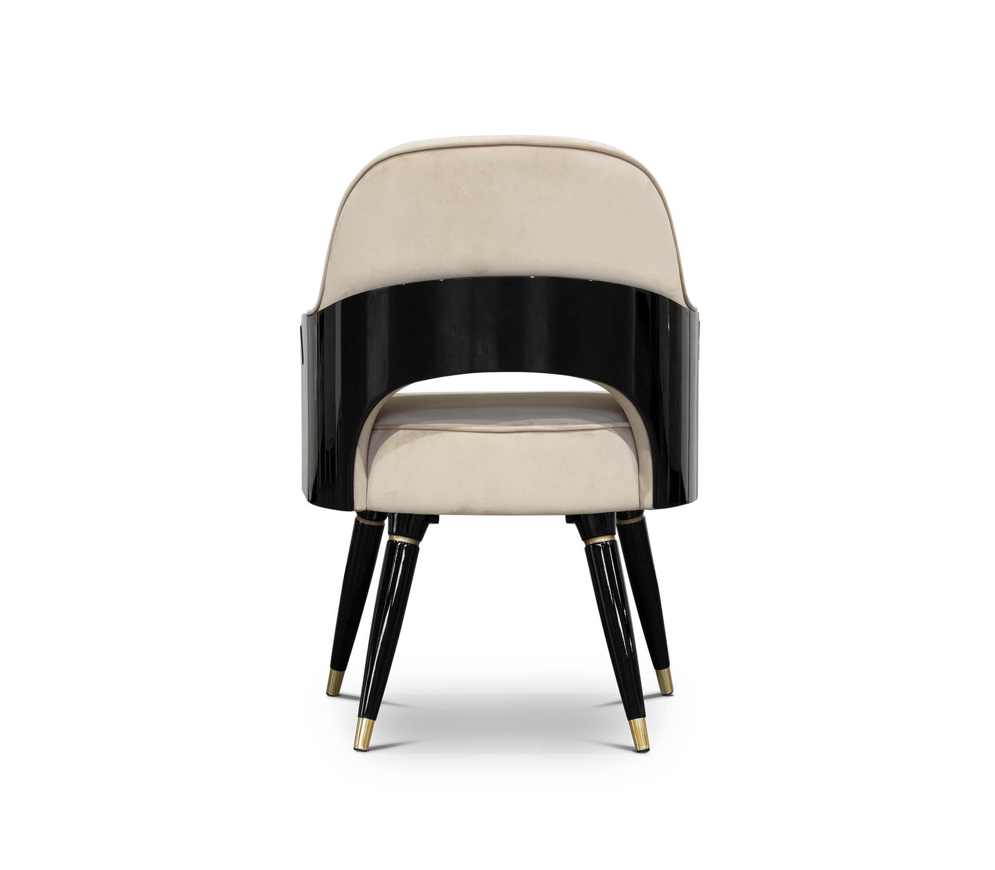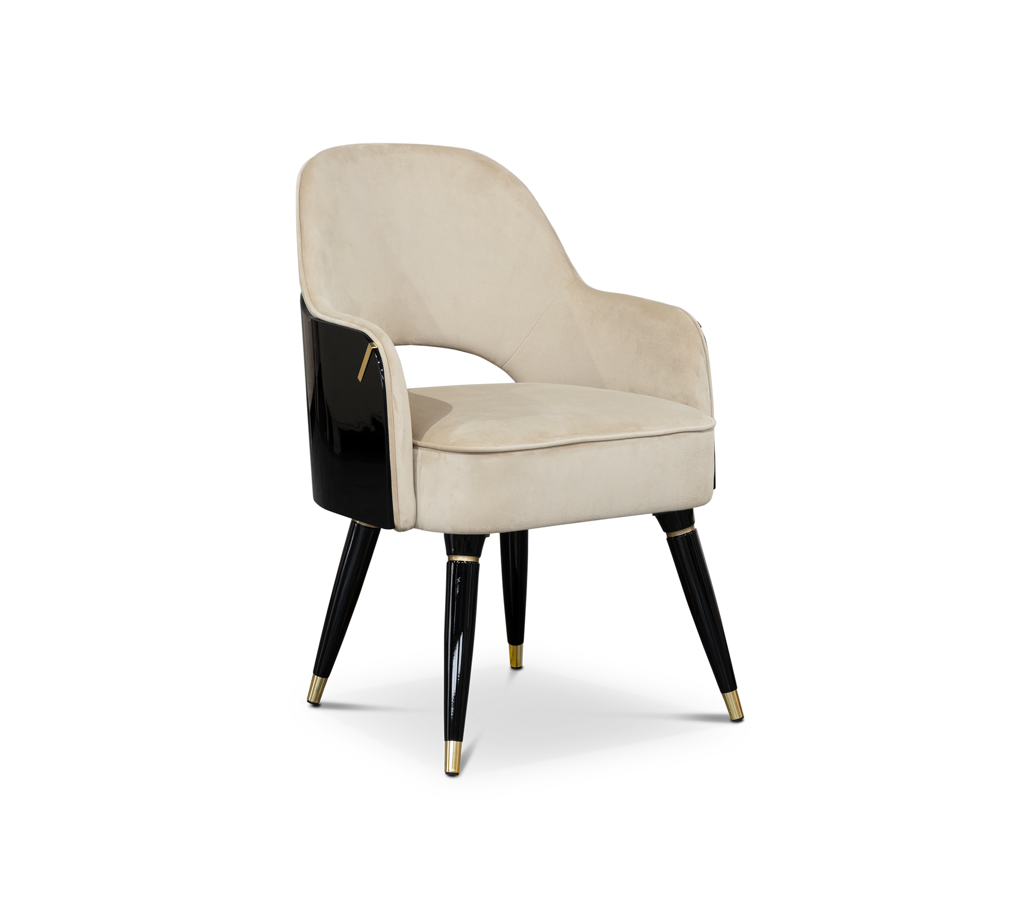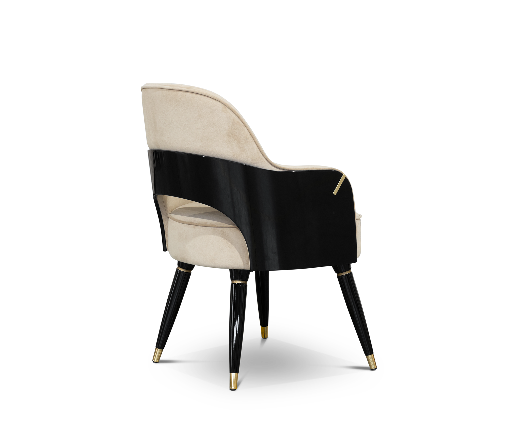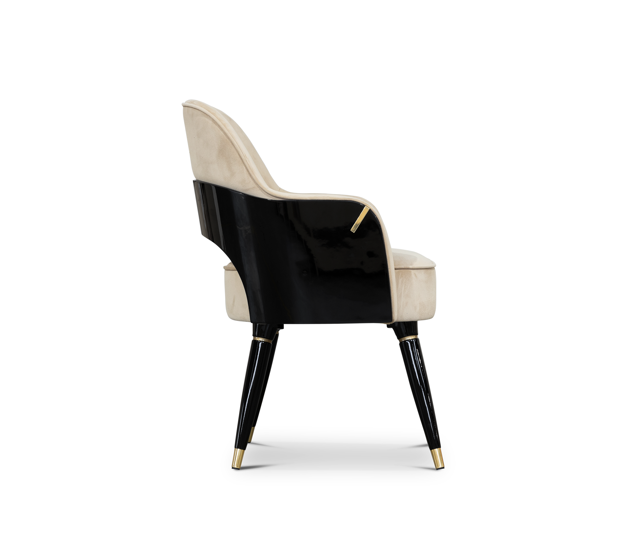 A luxurious and sophisticated piece that exudes timeless elegance. The contrast between the soft velvet and the sleek black lacquered wood creates a visually striking and tactile experience. Whether you're hosting a formal dinner or enjoying a casual meal, the Collins Dining Chair with armrest II is the perfect choice for adding a touch of luxury to your home