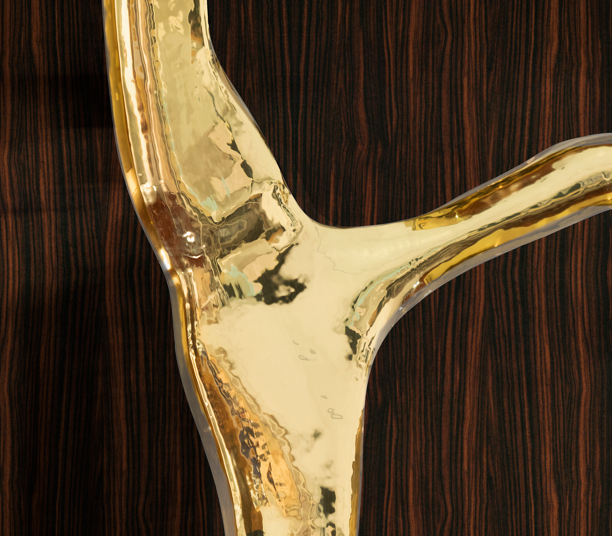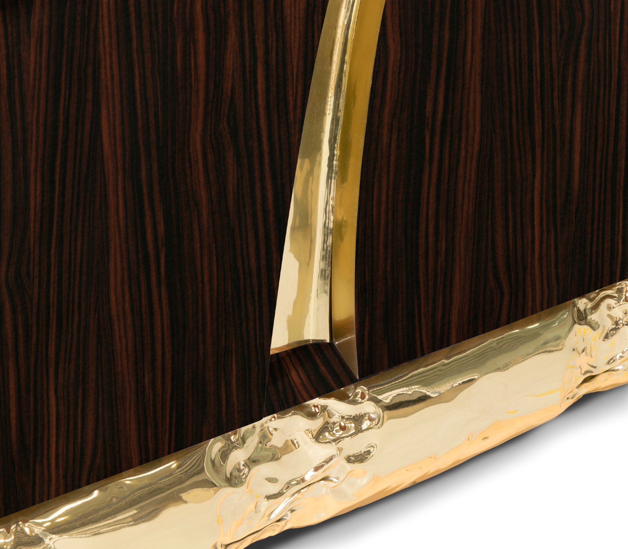 Ebony Macassar Veneer, Poplar Root & Polished Brass.