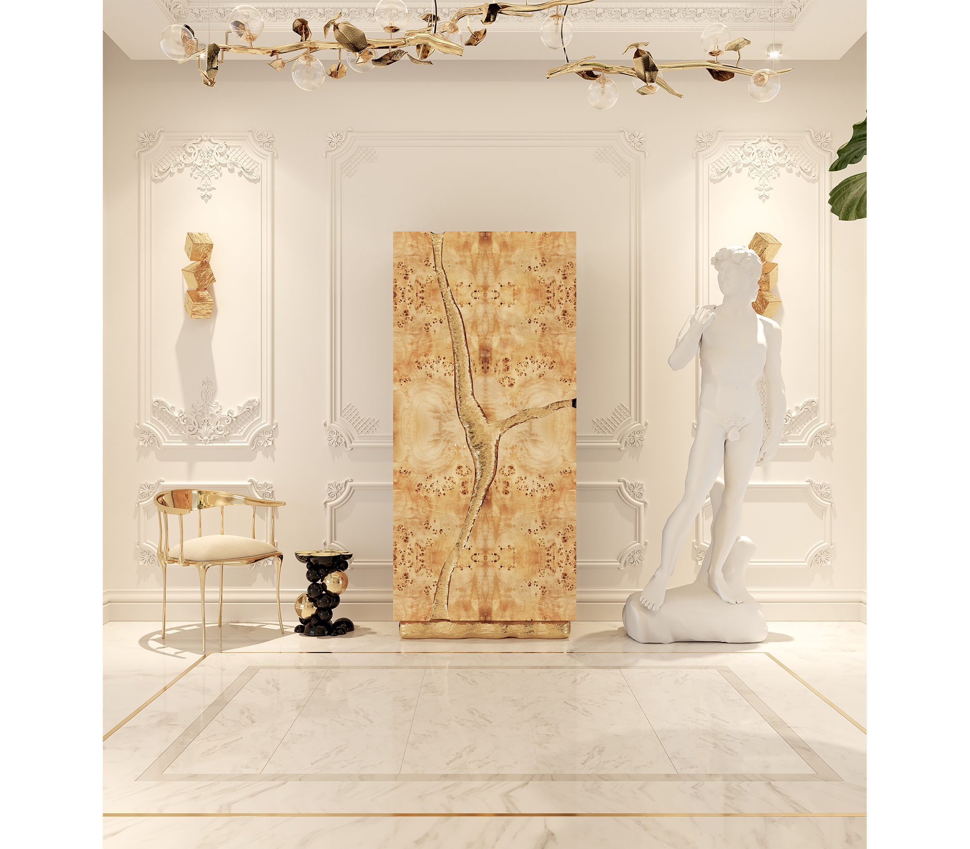 Poplar Root Veneer, Poplar Root & Polished Brass.