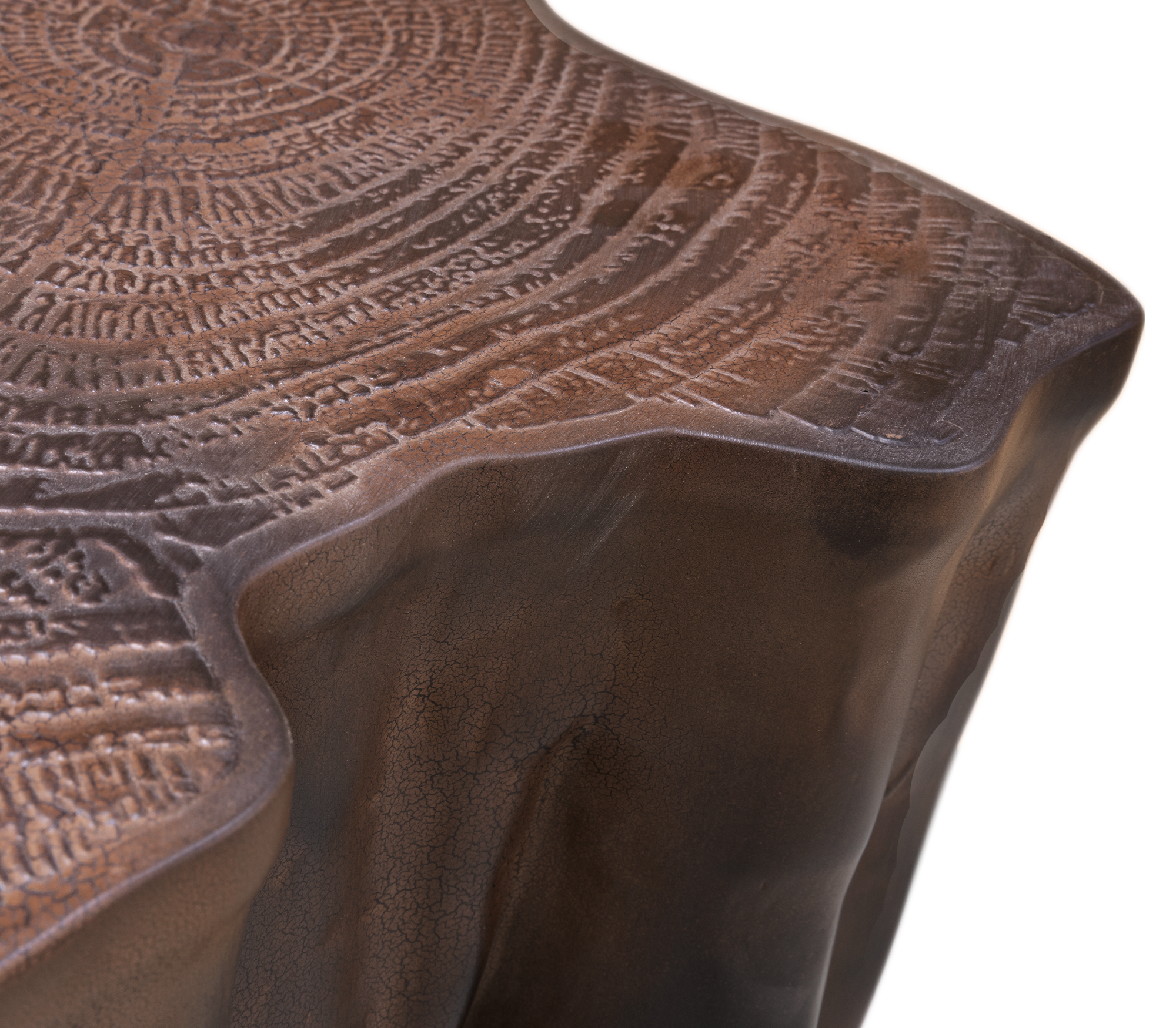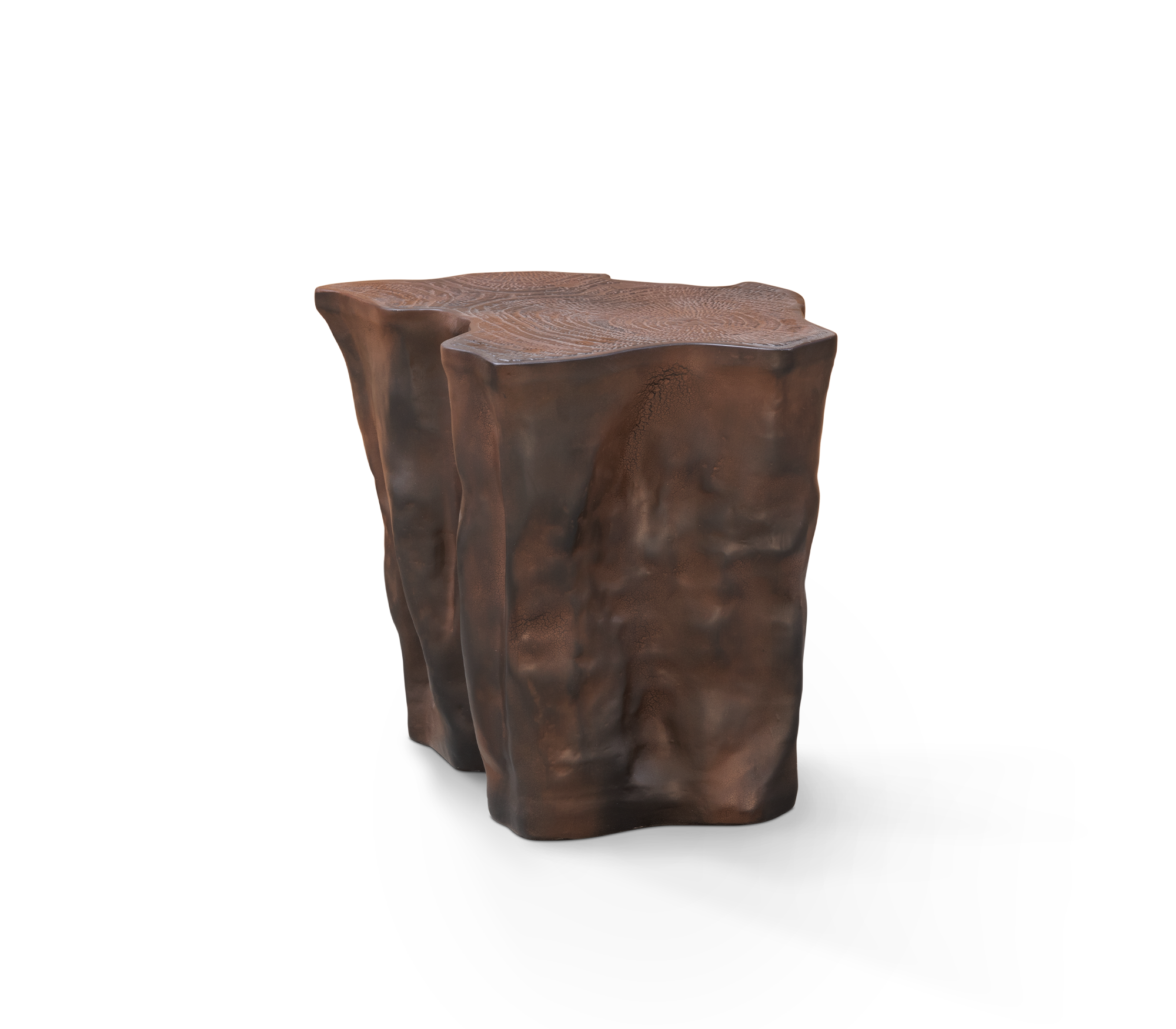 Eden is inspired by the mystic behind the name. This side table represents a part of the tree of knowledge and the tale of the birth of desire. Fully made of polished casted brass, with a delicately engraved top exposing the heart of a golden tree to the very heart of a home. Available a set of two side tables and also an elegant and highly decorative side table.