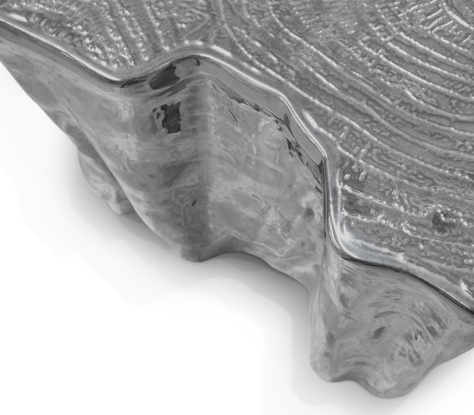 Eden is inspired by the mystic behind the name. This side table represents a part of the tree of knowledge and the tale of the birth of desire. Fully made of polished casted brass, with a delicately engraved top exposing the heart of a golden tree to the very heart of a home. Available a set of two side tables and also an elegant and highly decorative side table.