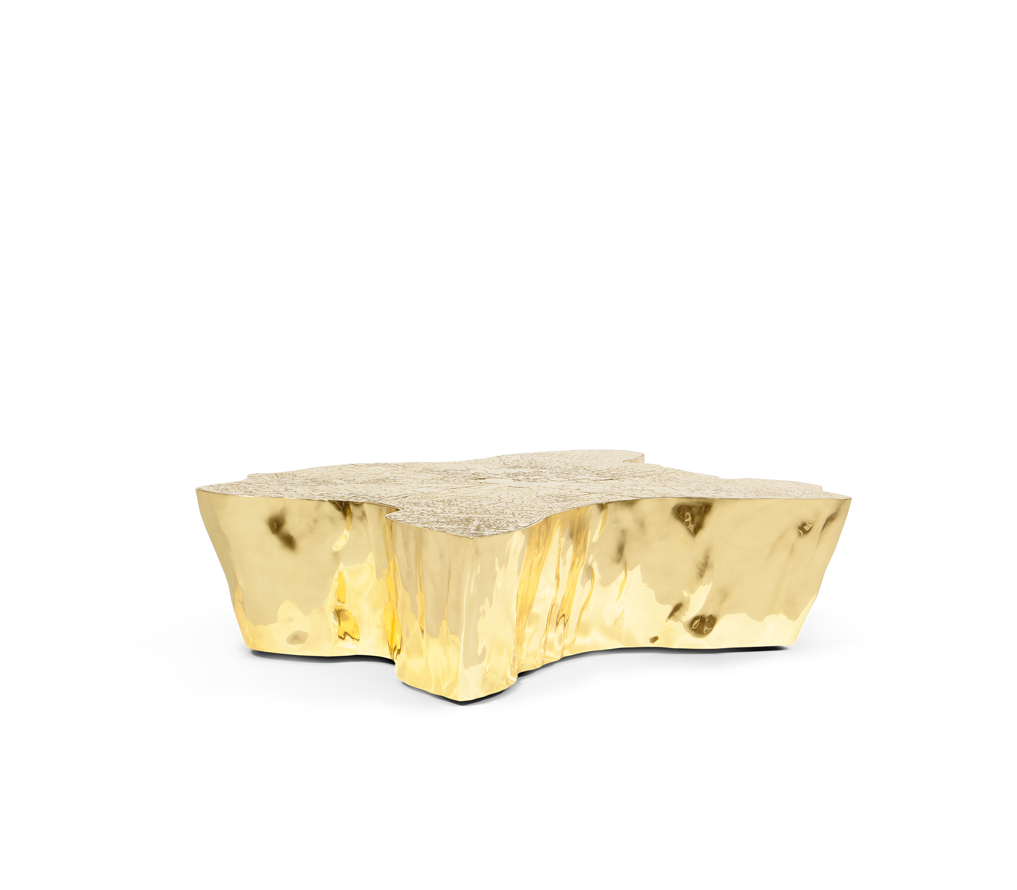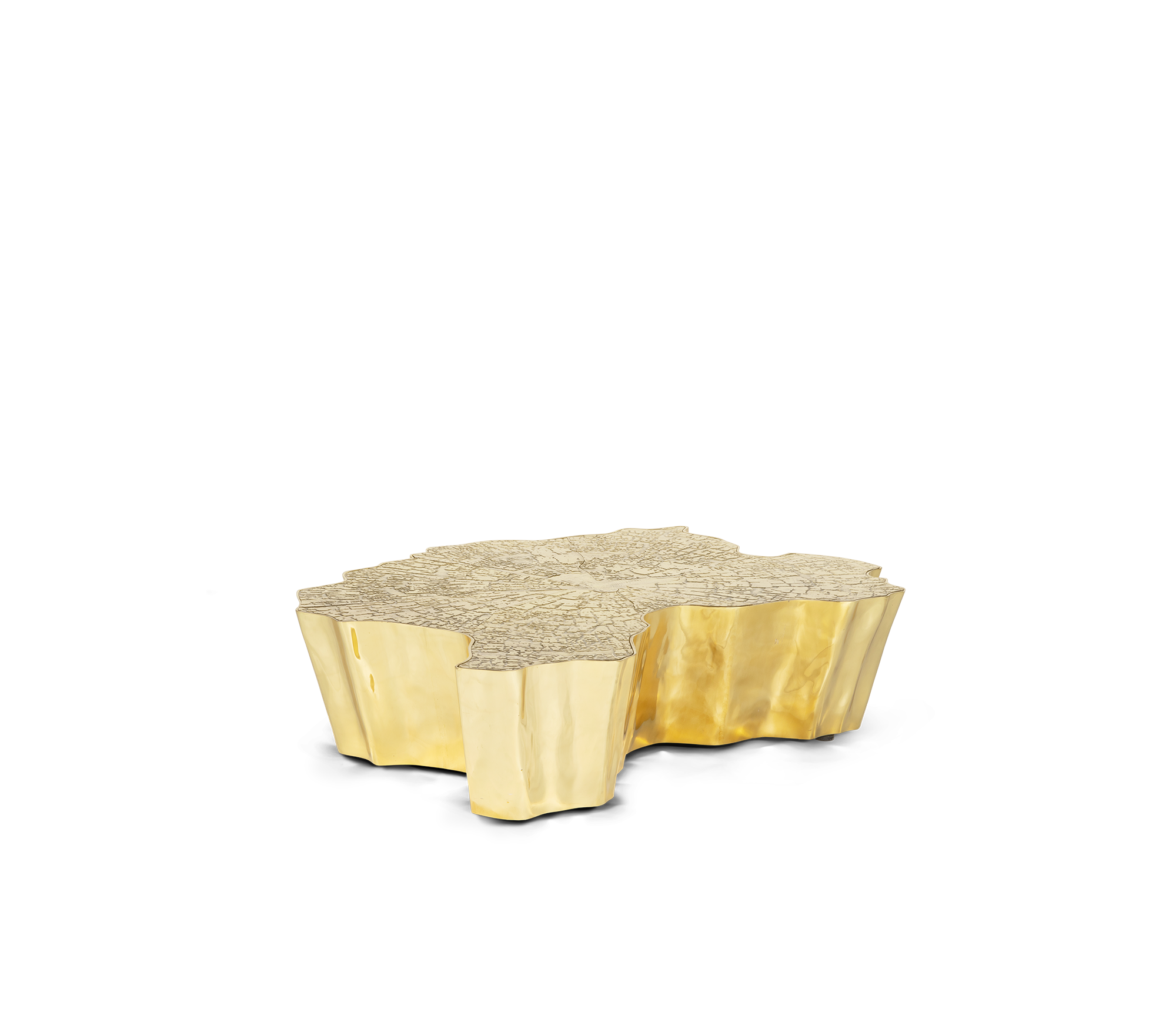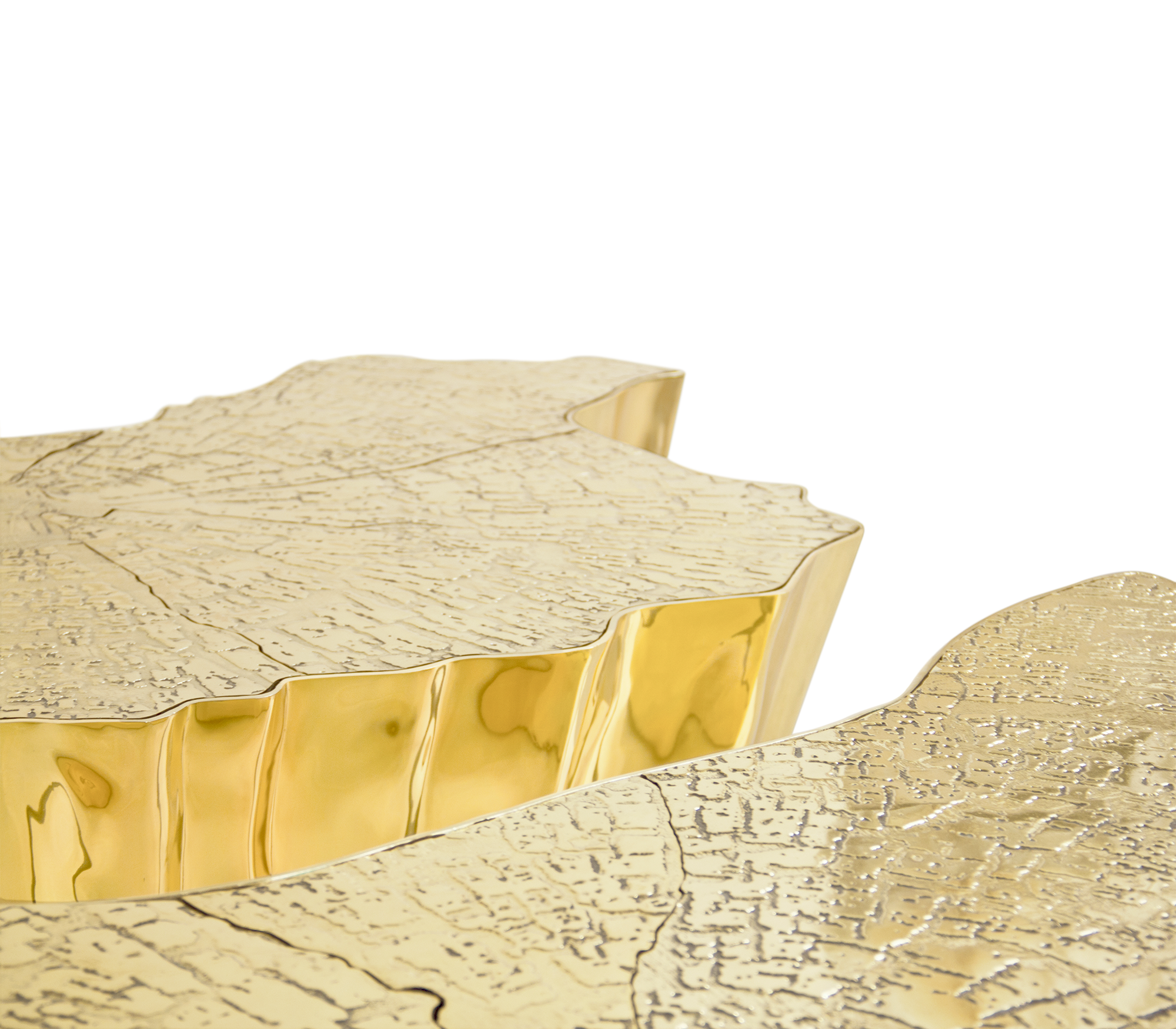 The mystic behind the name inspires Eden. A slice of the tree of life that fell from the Garden of Eden, this accent coffee table awakens desire and curiosity with its intriguing cut. Born from master artisans and the ancient technique of polished cast brass, this statement design piece incorporates nature-inspired design with industrious welding techniques, being manually assembled, making each piece unique. With delicate lines and bold details, a manually engraved top exposes the heart of a golden tree, boasting a sinuous gold plated base that stood the test of time.