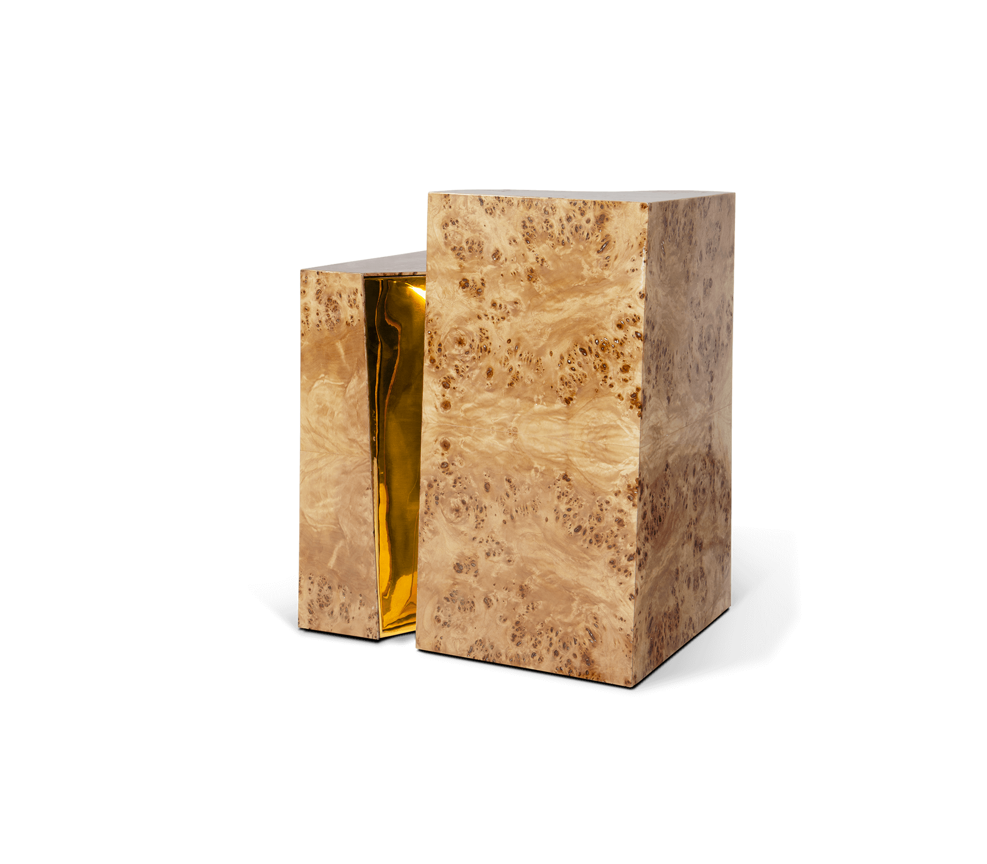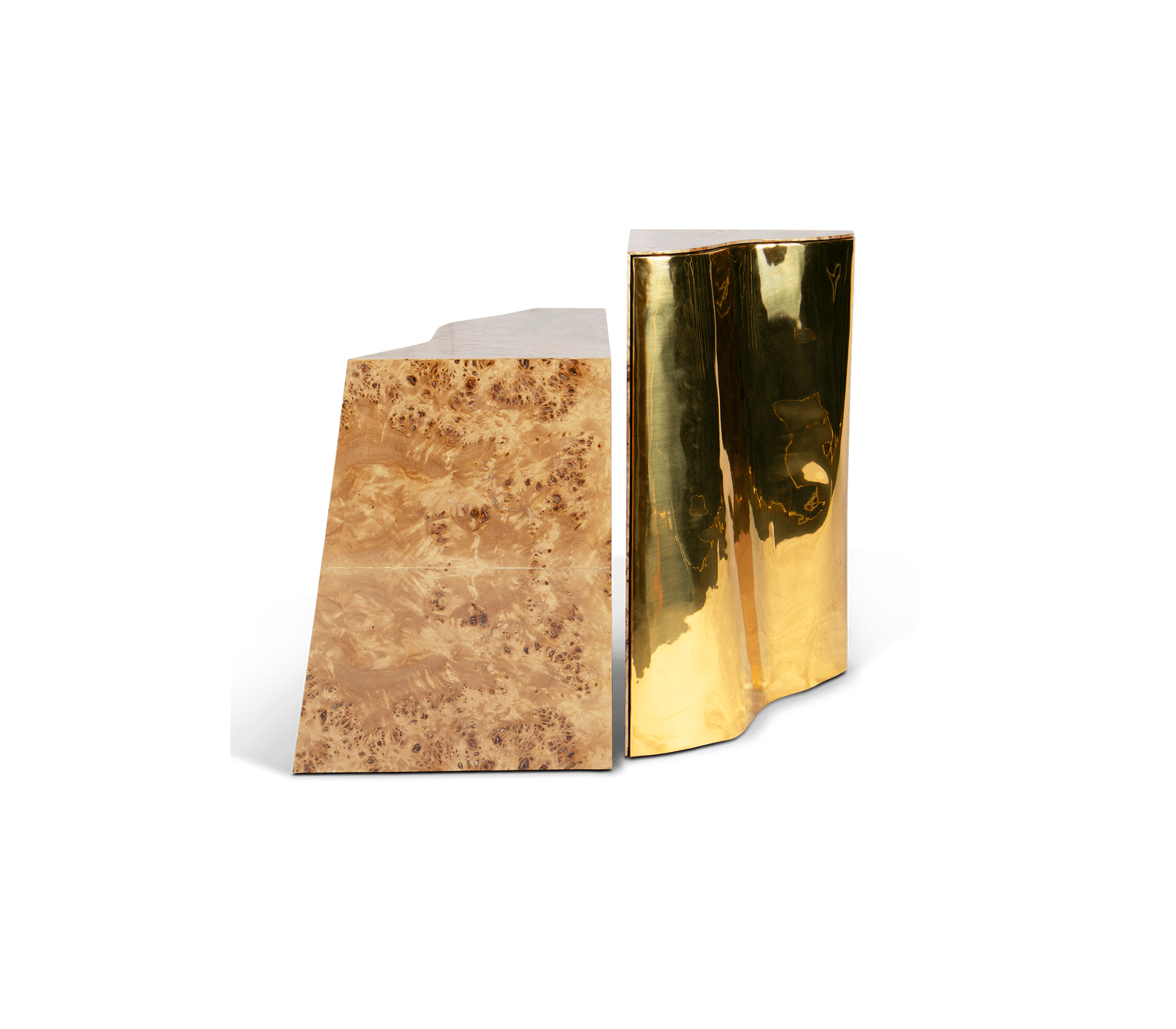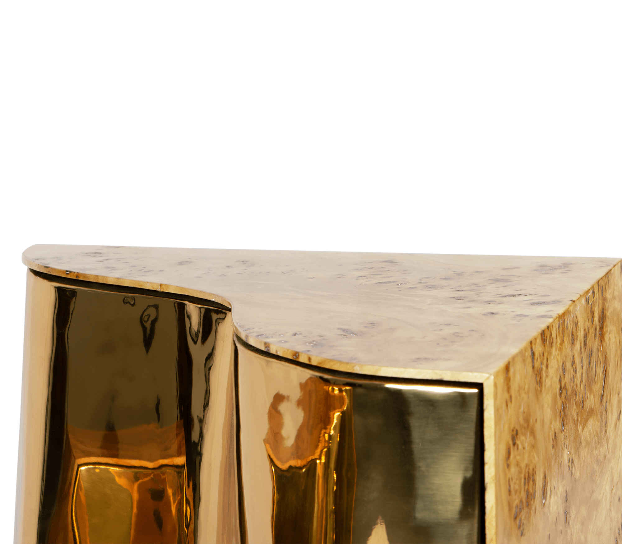 Polished brass and Poplar Root Veneer.