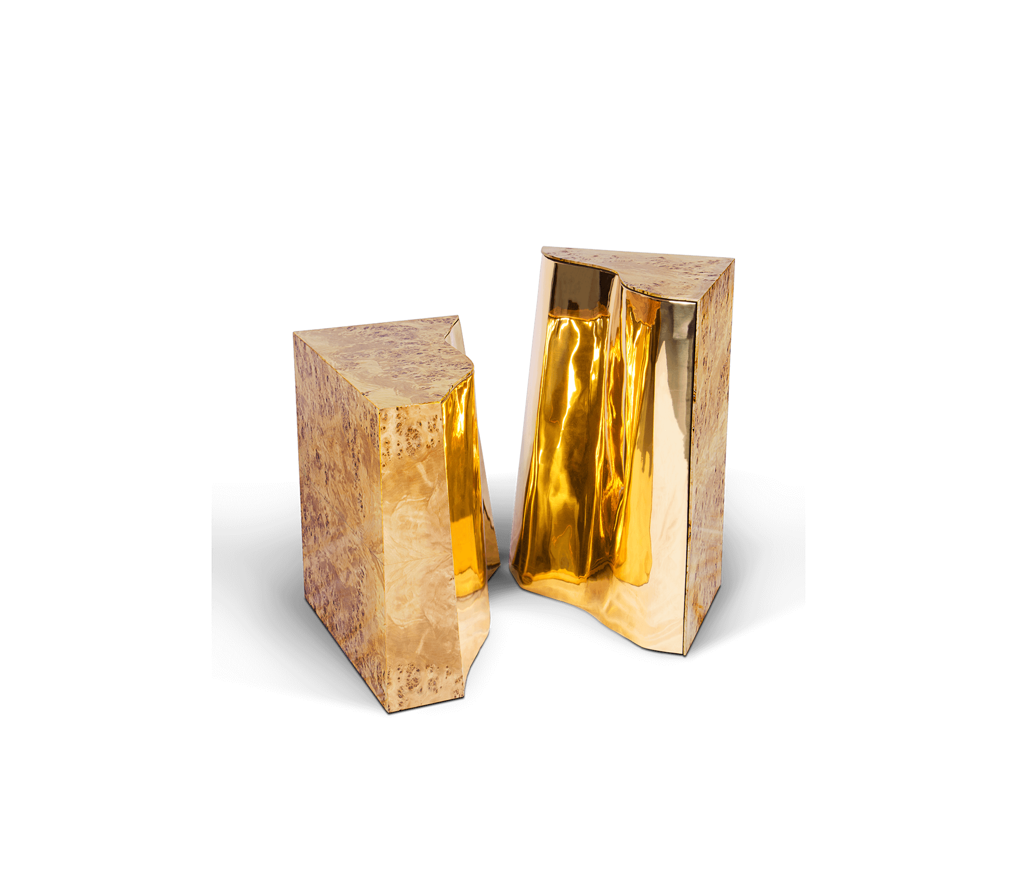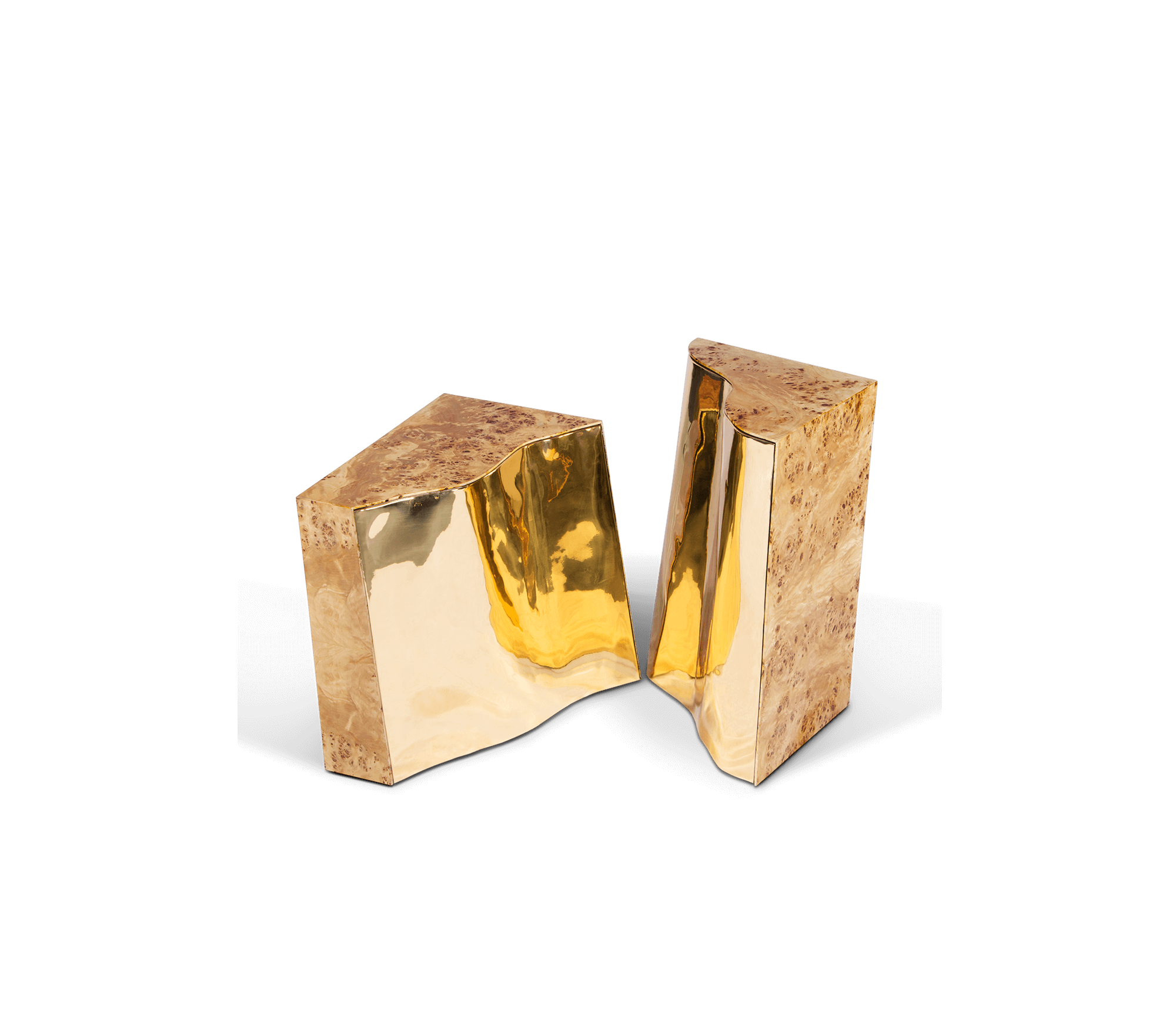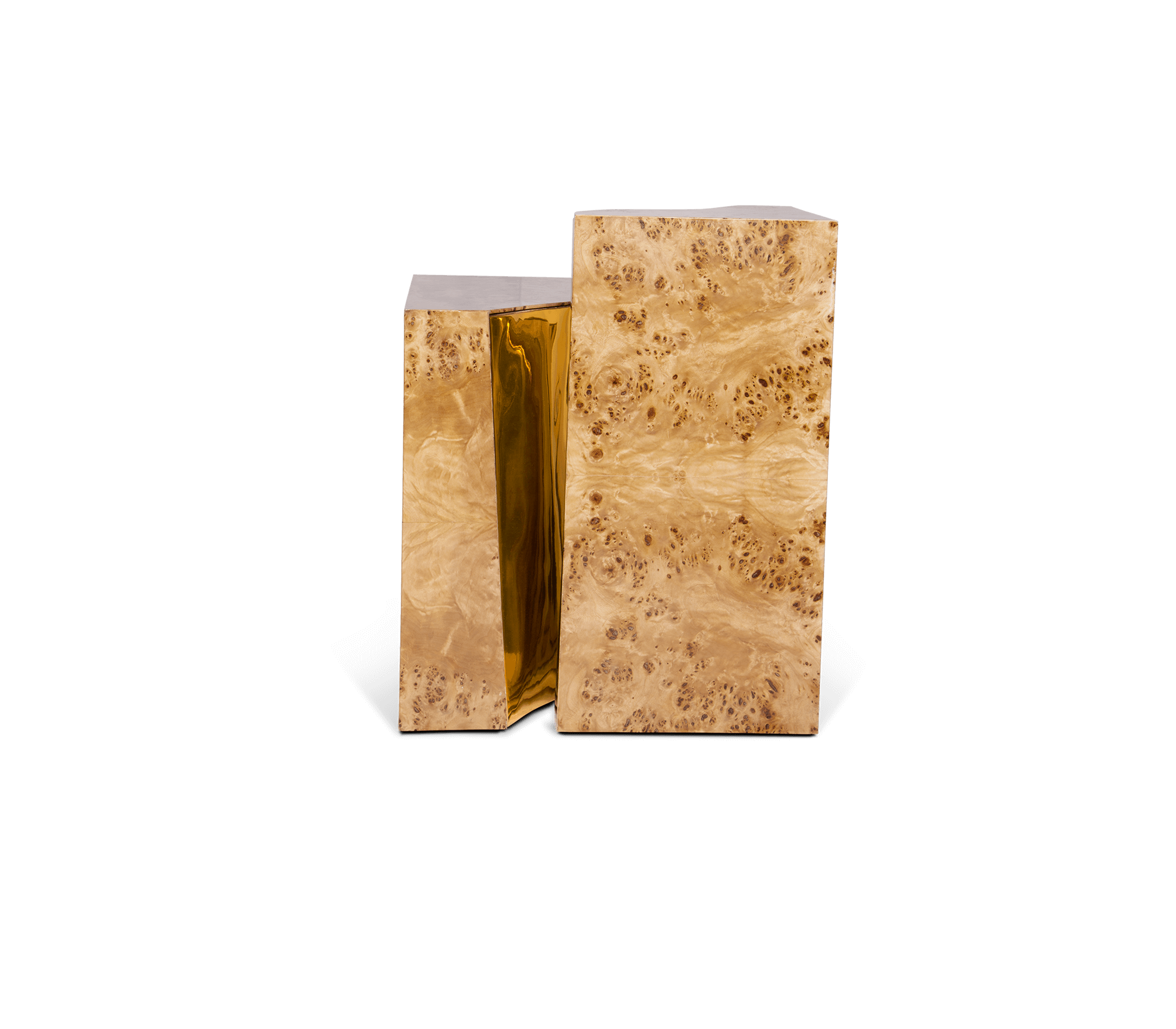 Polished brass and Poplar Root Veneer.