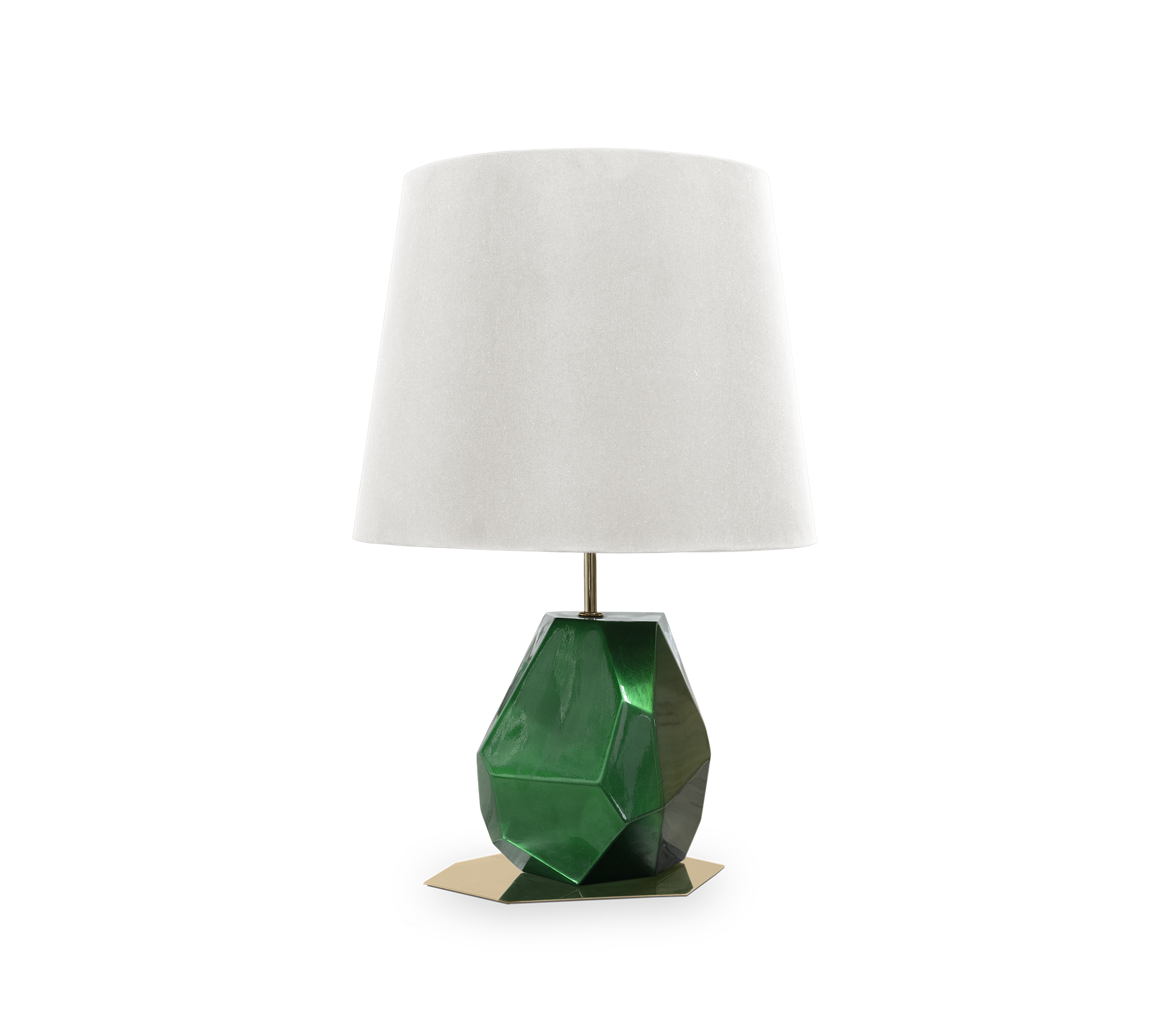 Feel is a table lamp, but actually, it can also be a modern bedside table lamp. It can be elegantly used in your living room as sophisticatedly in your bedroom. Handcrafted by Boca do Lobo, Feel is an exclusive lamp covered with silver leaf, the shade is silk and the base is polished stainless steel. Feel lamps allude to mineral forms and natural materials to produce sculptural pieces. Highly decorative, Feel’s lamps base is available in emerald, lapis, amethyst or citrine.