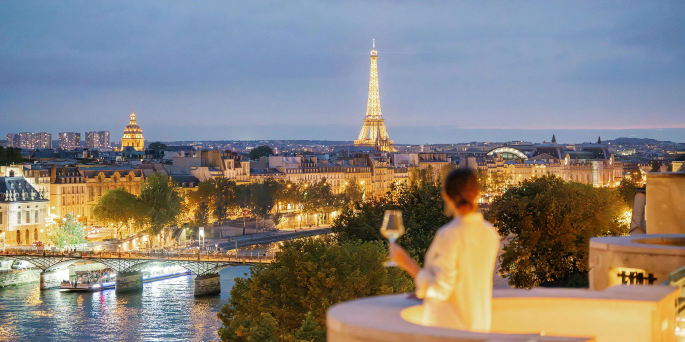 Perched on the seventh floor, Le Tout-Paris — the hotel’s MICHELIN-starred brasserie — invites guests to dine among the rooftops of the city, with panoramic views stretching over the Seine and the Eiffel Tower.