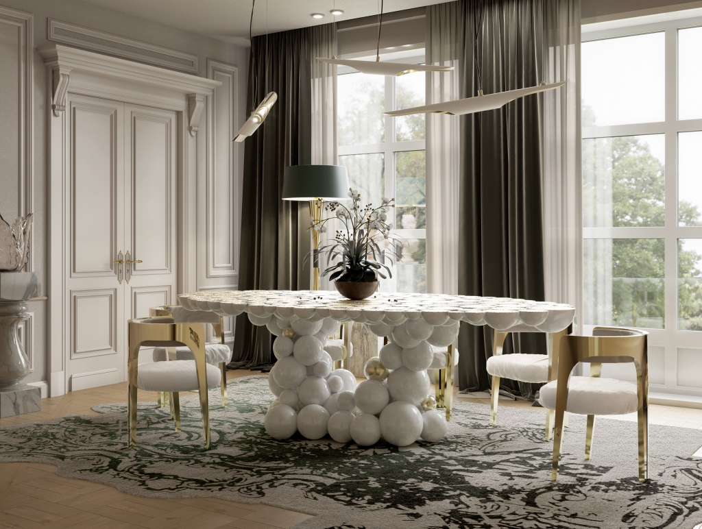 In a carefully composed living space, the Newton Dining Table commands attention with gravitational elegance. Its bold metallic spheres reflect light like fragments of a contemporary constellation, echoing the expressive strength celebrated at Collectible Design Salone 2026. It does not merely occupy space; it defines it.