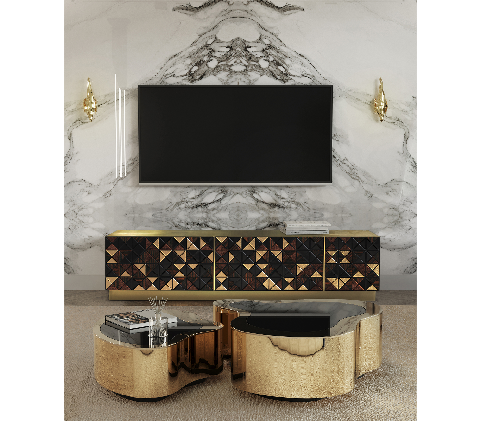 Iconic and unparalleled, the Pixel TV Cabinet introduces a groundbreaking work of pioneering design. This piece embodies the dedication and artistry of its creators, employing a variety of traditional production techniques to craft an avant-garde furniture piece that aligns with the digital age. Its playful character is evident in both shape and colour palette, challenging conventional design norms with the finest craftsmanship. Constructed with 1088 triangles, the upper part of the Pixel TV Cabinet plays with perception, combining exceptional materials with a walnut composition to give the cabinet a unique and striking design, making it a perfect addition to modern living spaces.