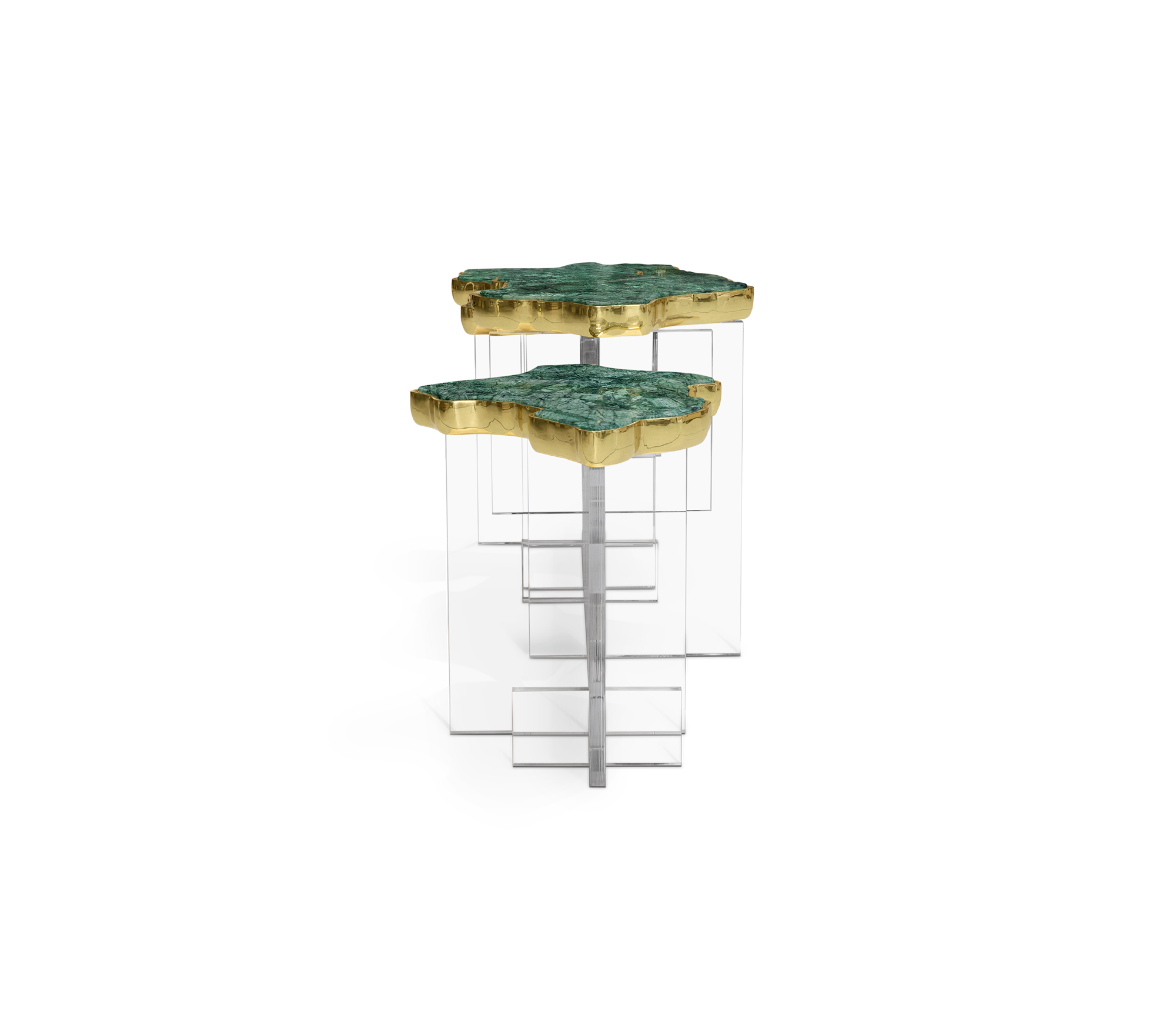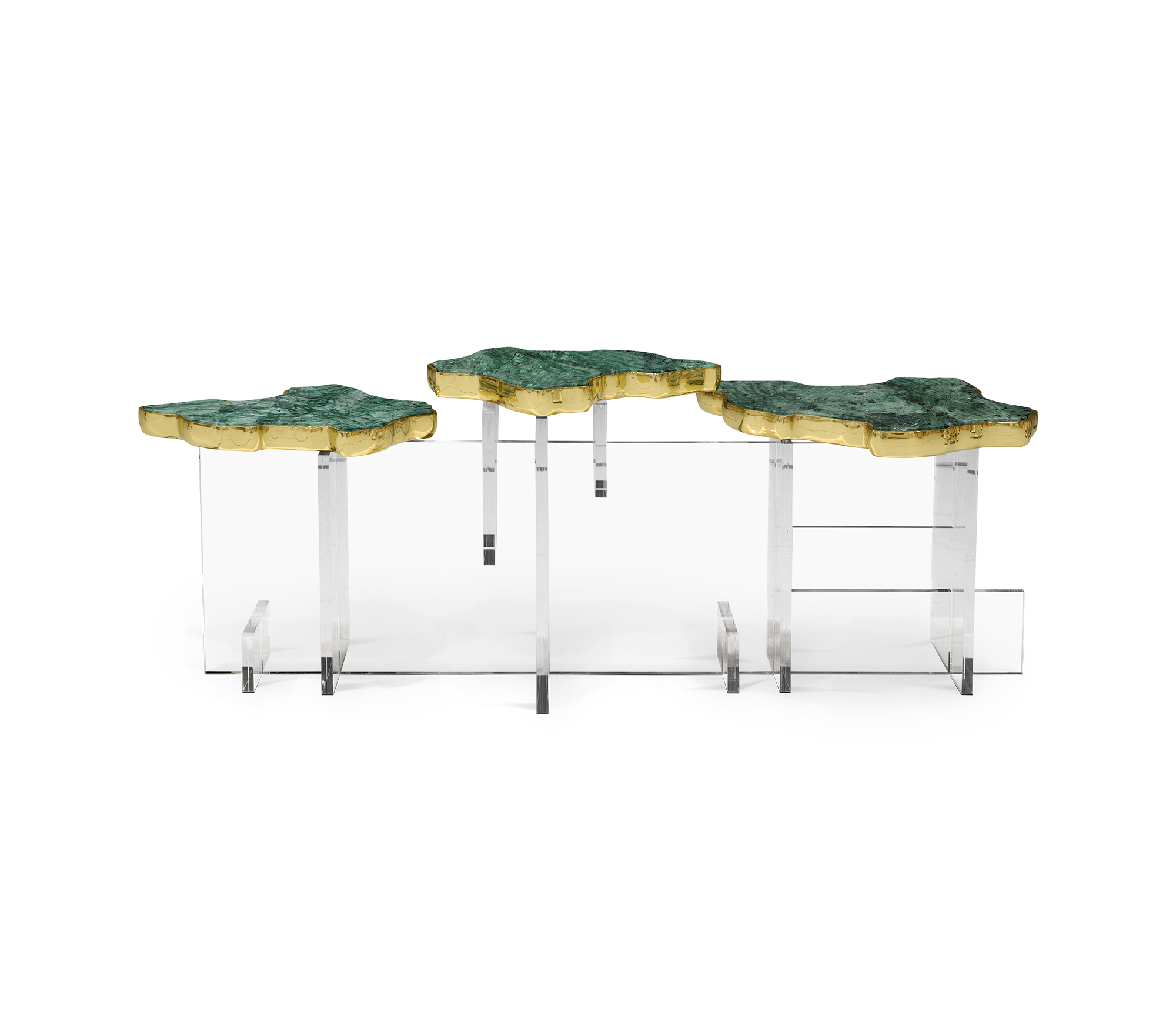 Monet is a tribute to the renowned French painter behind the Impressionism movement, and artwork that turns into a contemporary coffee table with a modern design twist. Innovatively depicting nature, the Water Lillies series are gently brought to life in an elegant coffee table with a gold surface made from cast brass with a unique textured finish. Featuring both contrasting shapes and materials, as the unconventional compositions of the artist, the contemporary coffee table is supported by a geometric acrylic base, allowing to capture natural light. An immersive exceptional object, the Monet coffee table is perfect for cutting-edge living rooms.