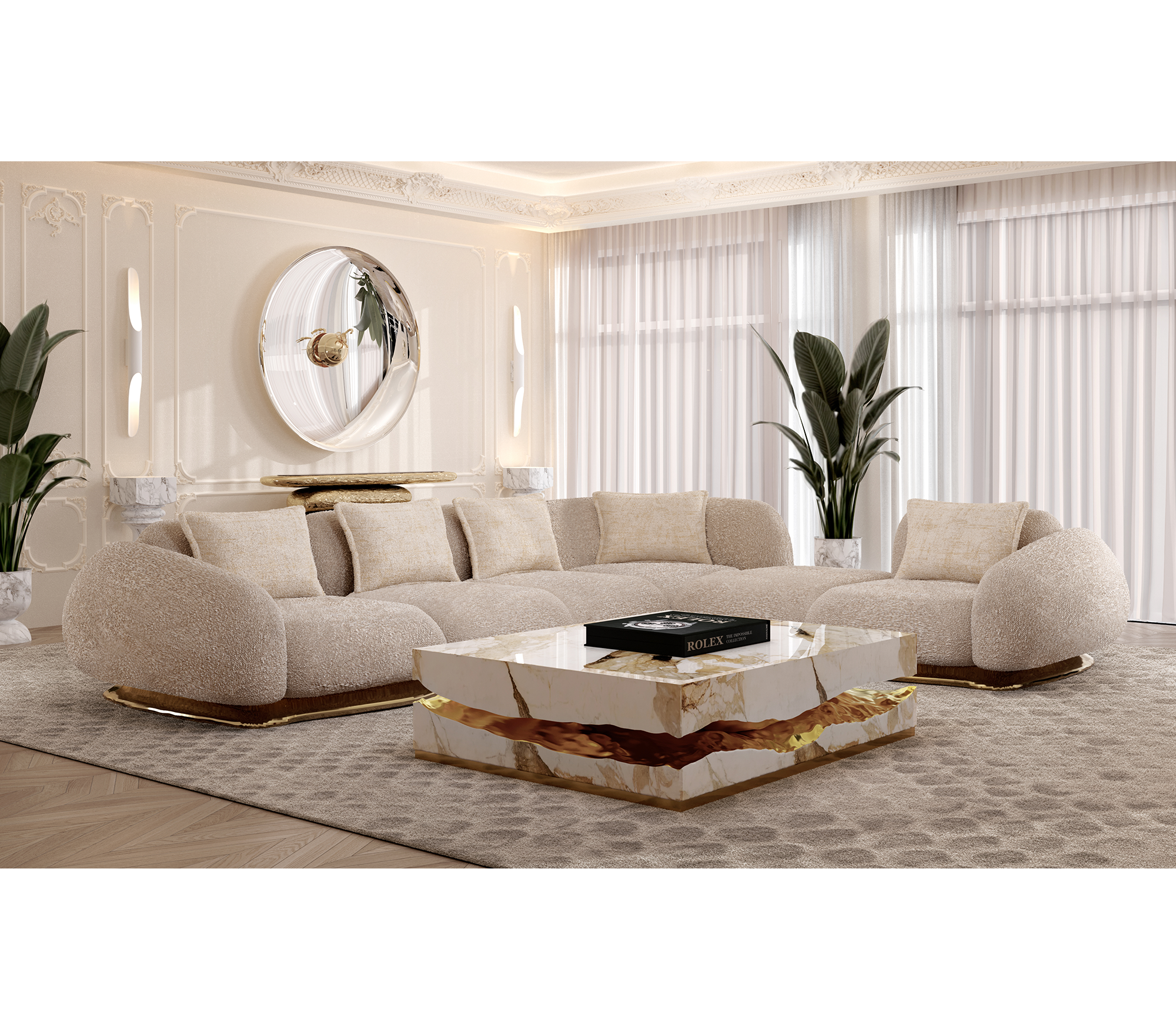 The Quarry Center Table takes exceptional craftsmanship and design to a new level of sophistication. Inspired by raw stone's natural forms and beauty, this coffee table is a celebration of organic elegance. Made from Carrara marble, its surface displays unique natural veins that tell a story thousands of years old. Complementing this natural beauty, the polished brass frame adds a luxurious shine, creating a harmonious contrast with the marble. The hand-carved details in the marble and brass convey a sense of movement and fluidity. At the same time, the combination of noble materials ensures that this coffee table is as durable as it is beautiful. The Quarry Center Table brings a new perspective to contemporary interior design, offering a duality of strength and sophistication that transforms any space.