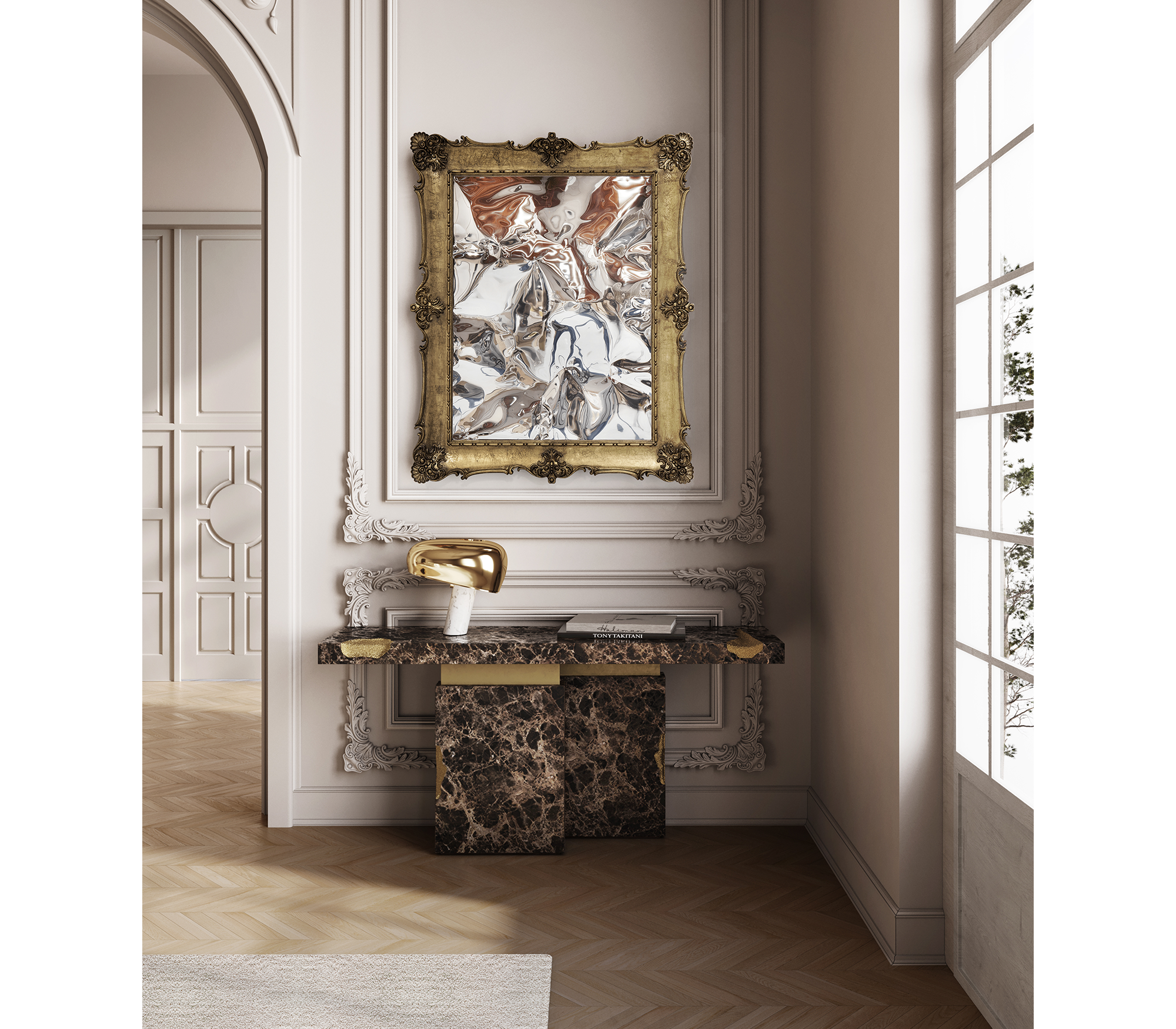 The Outburst Chandelier is an exquisite piece that results from the collaboration between Boca do Lobo and Koket. It combines contemporary art with an elegant design language. This suspension lamp impresses with its fusion of noble materials, including metal, cast brass, acrylic, and faux marble. Its dynamic shapes and meticulous details reflect an explosion of power and sophistication, making it a centerpiece in any interior space.