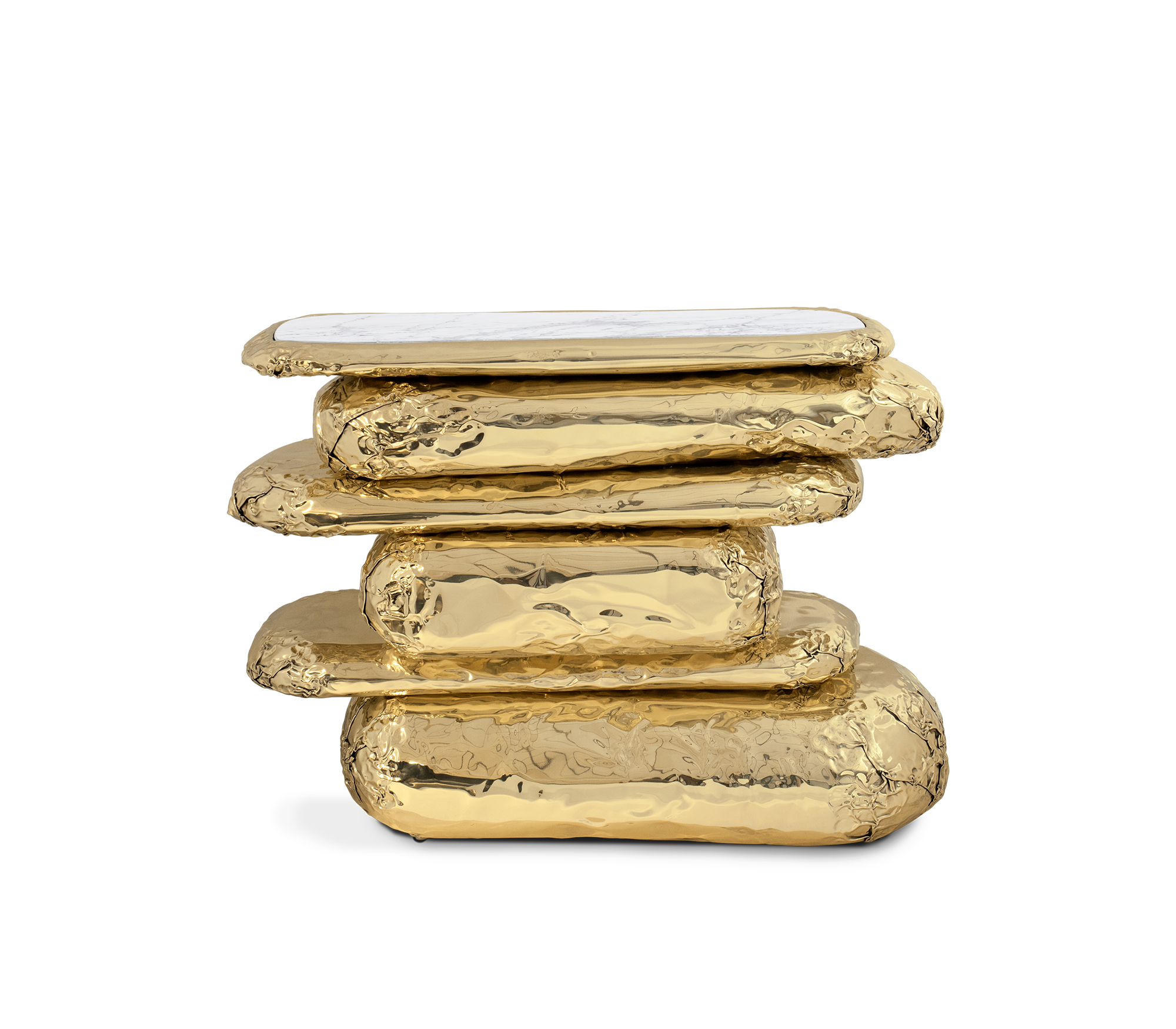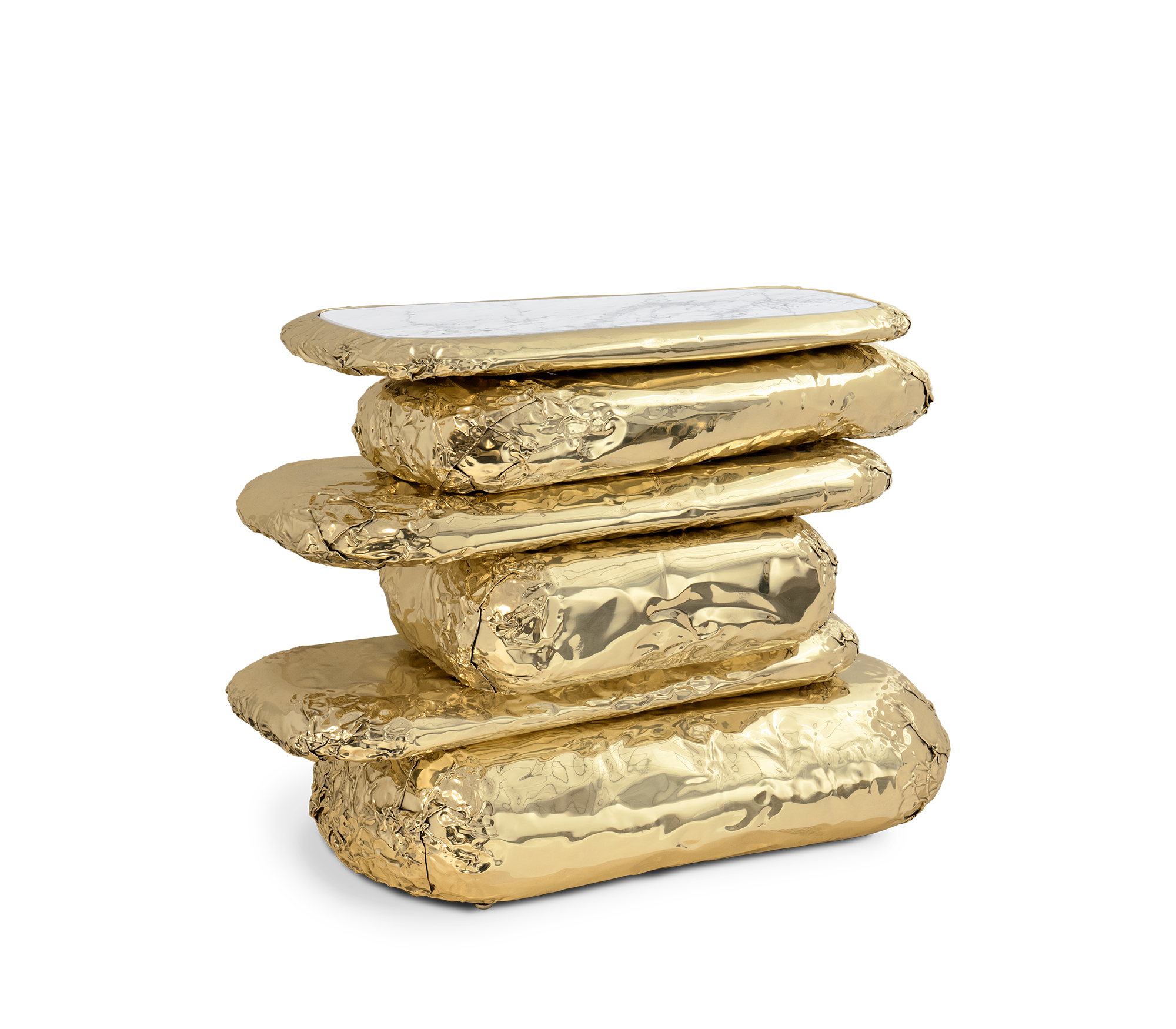 Finding inspiration in the prehistoric monument Stonehenge, positioned asymmetrically and composed by a striking finishes and materials –Brass and Marble. This piece promises to elevate your living space to the next level. The metallic hues make an elegant contrast while beautifully combine and pay tribute to the Neolithic and Bronze Age.