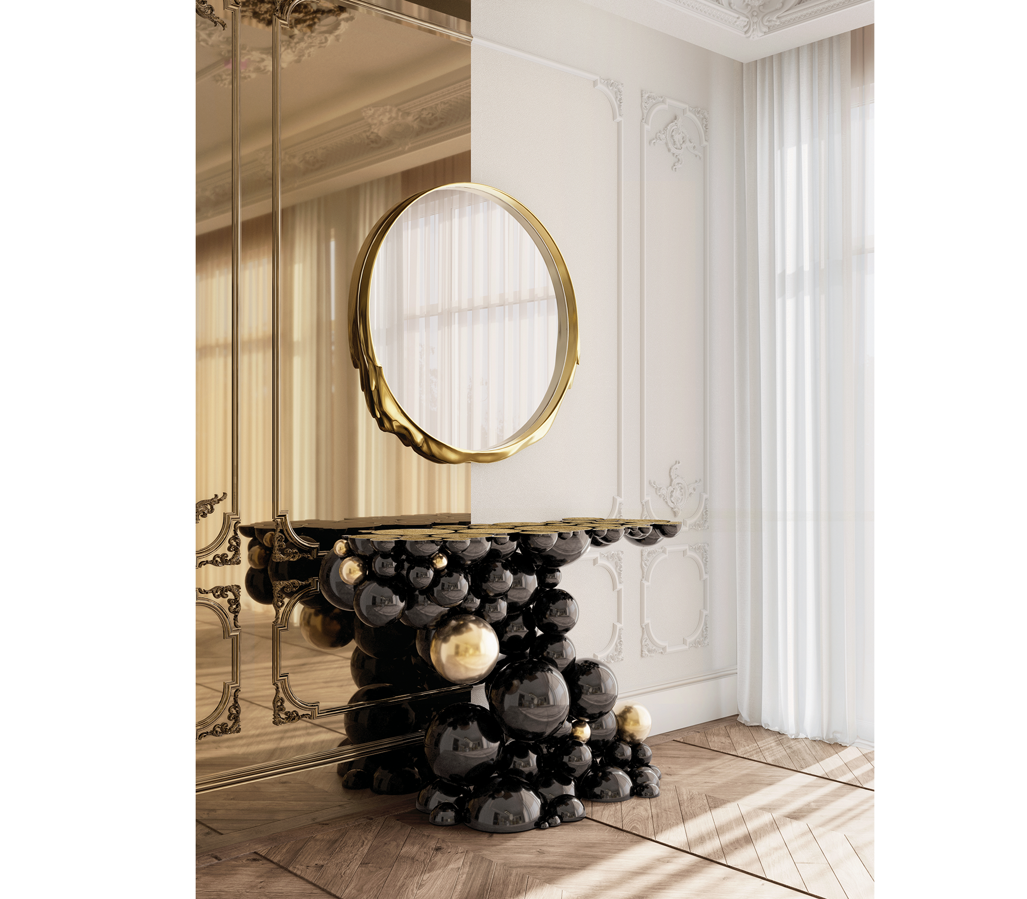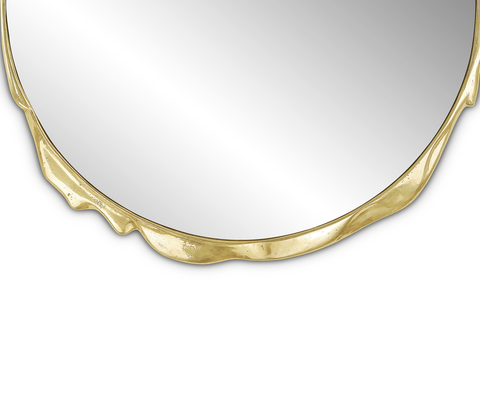 Magma Mirror found its inspiration deep beneath the surface of the Earth , where three physical parameters: temperature, pressure, and composition are responsible for creating something so complex and potent. Magma Mirror’s subtle lines are the result of a precise hand crafted process. The shape of the mirror emulate suspended crystals and fragments of unmelted rocks transported in the magma; that crystallized during movement.