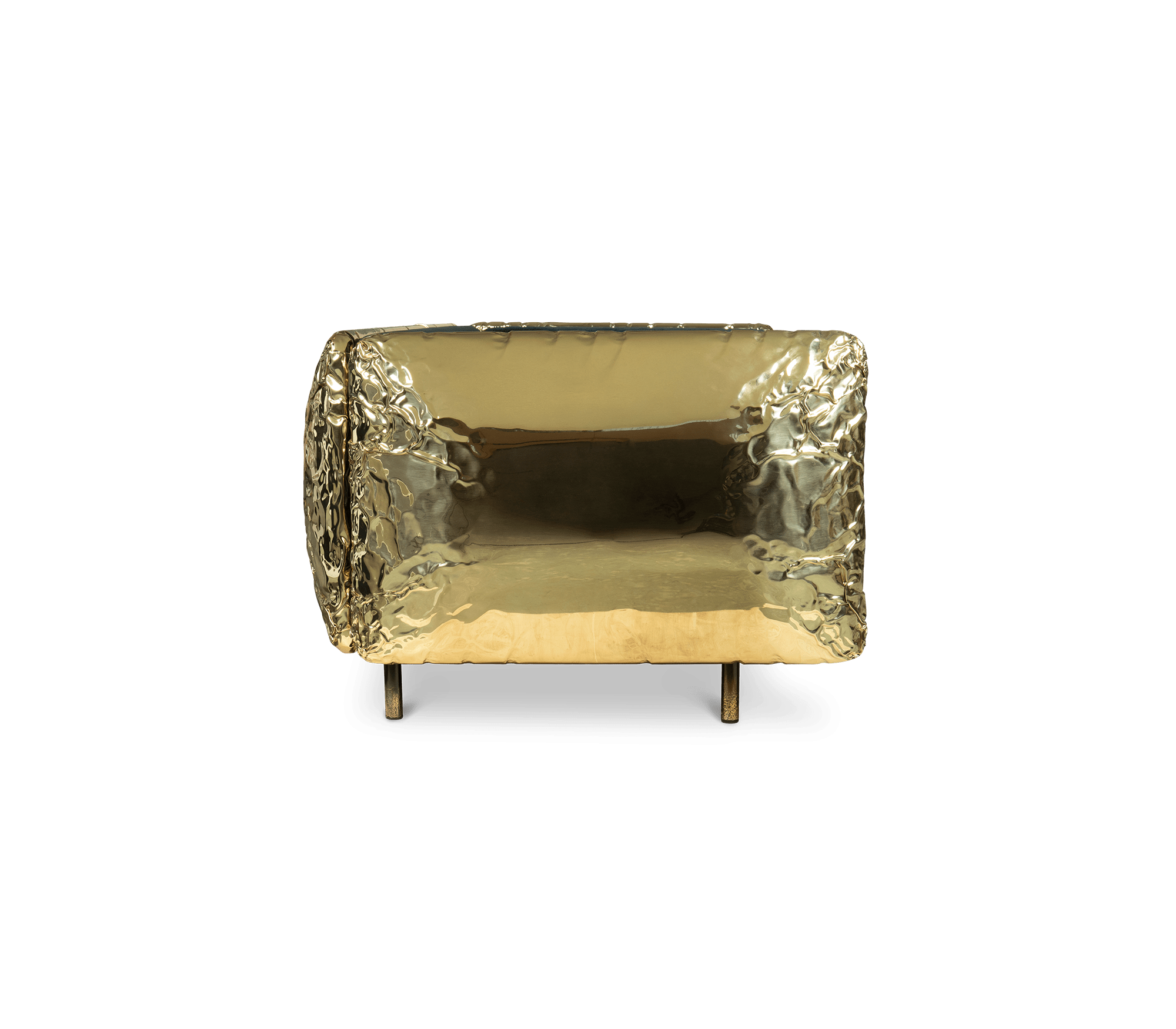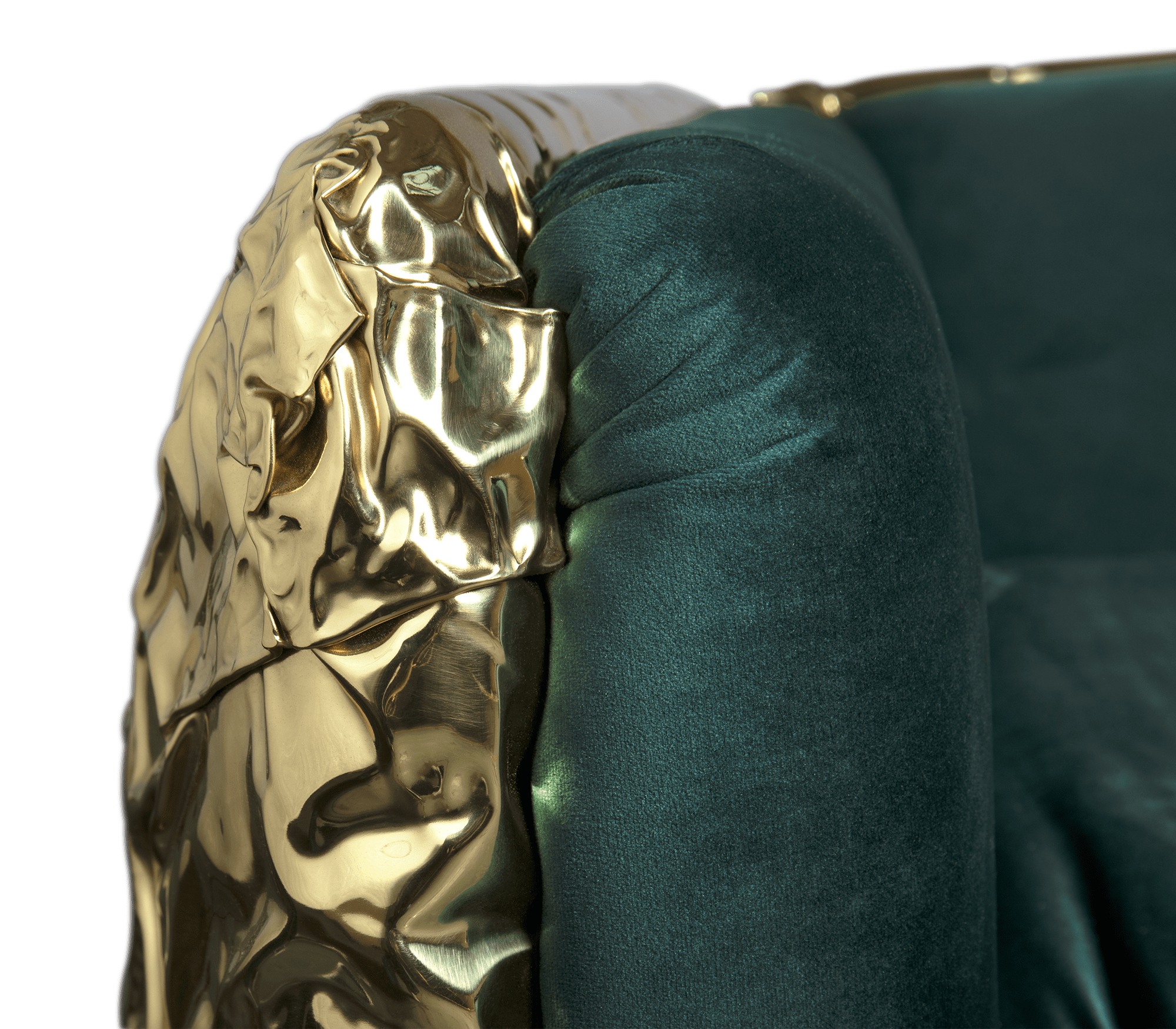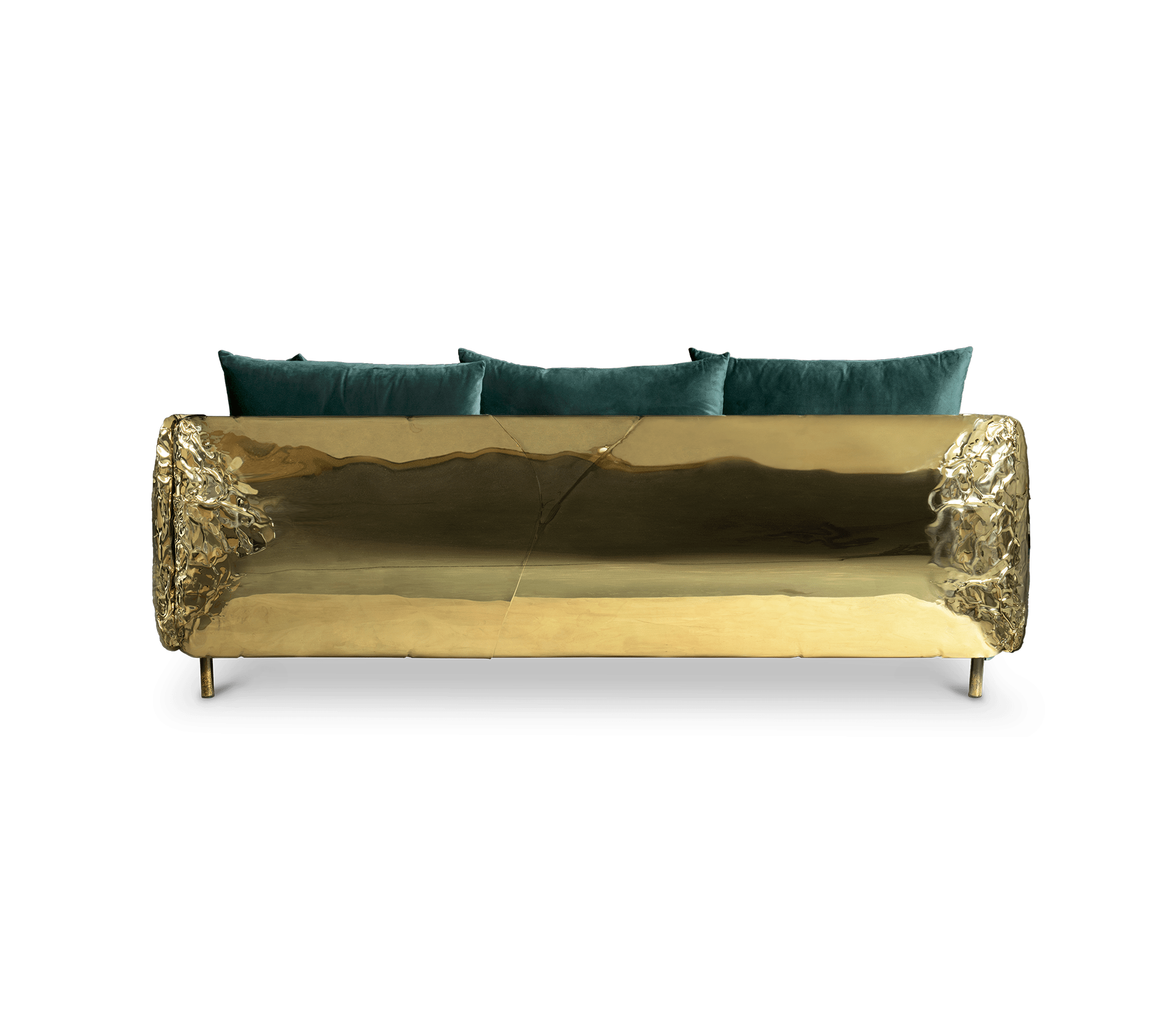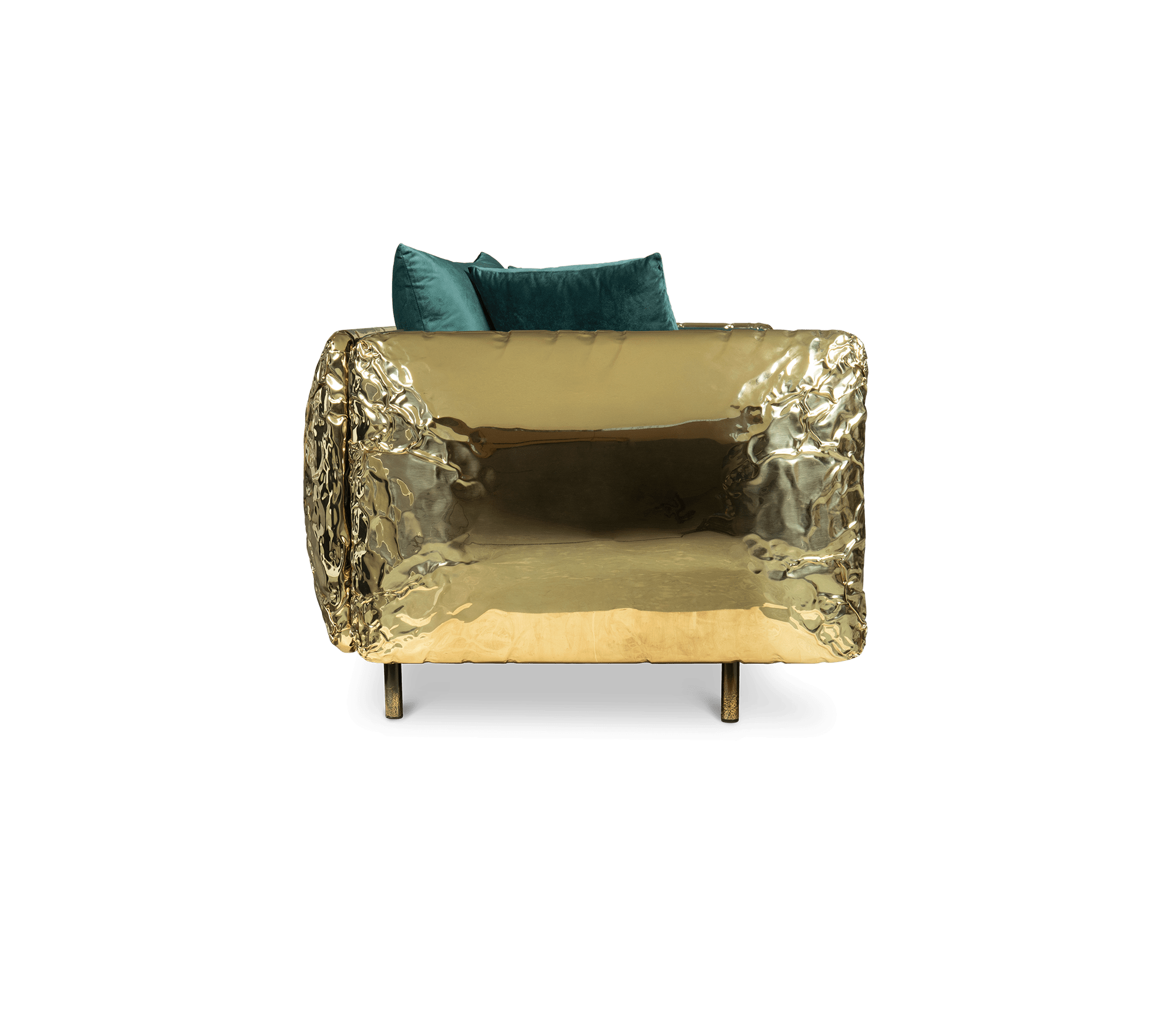 Imperfectio modern sofa is the expression of imperfect aesthetic, the appeal of authentic art that is truer to life. An accent sofa that praises artisanal work as the ultimate form of art that is quite intentionally imperfect. Through its unique existence and shapes, the modern sofa determines its history. The irregularities and flaws over the manual hammered brass expose the beauty of imperfection. Some parts are roughly asymmetrical at the surface yet comfortable and smooth in a peculiar way to excite a desire for complementing your living room.
