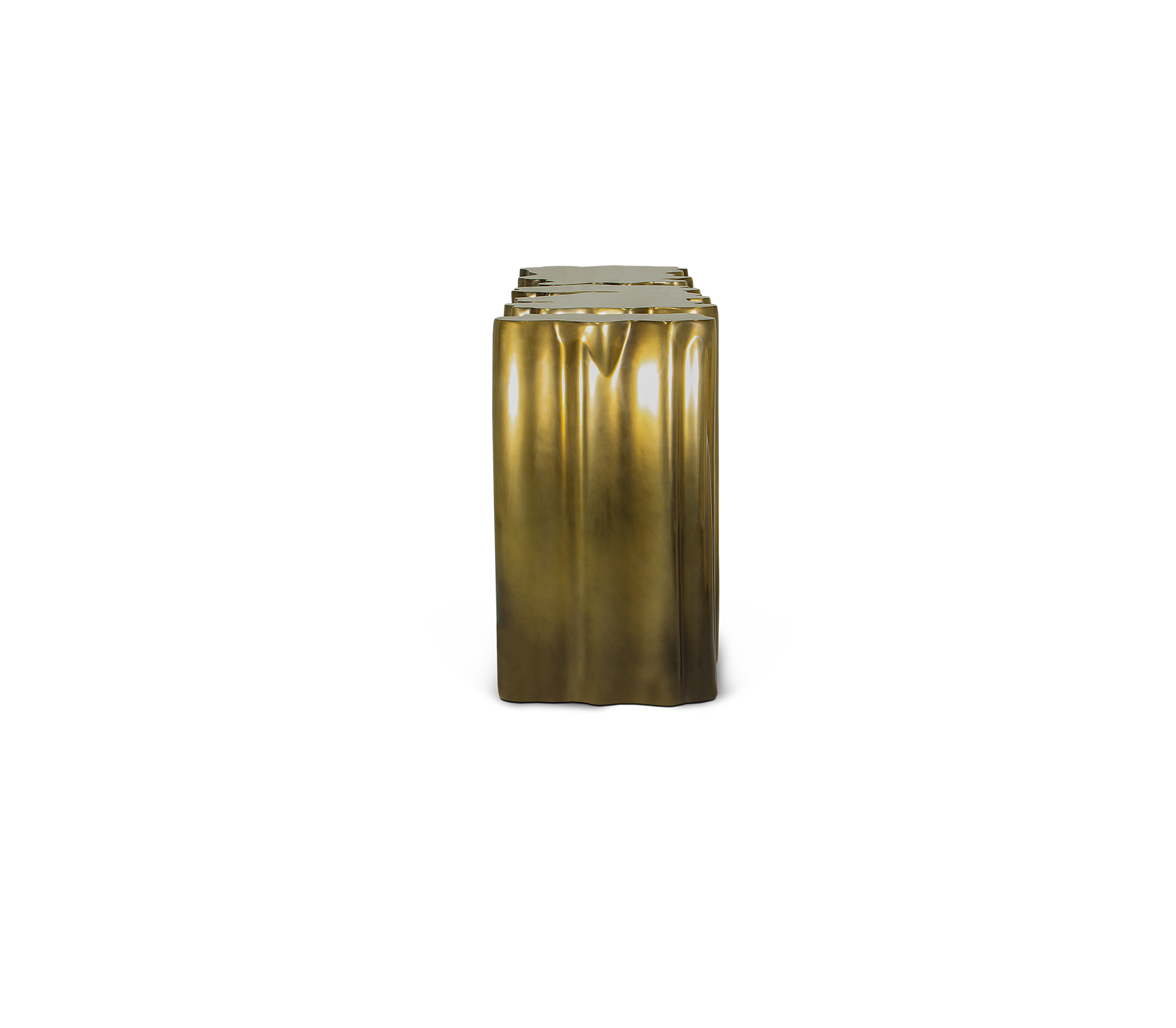 Carefully built from resin, the Monochrome is composed by three separate modules, covered by an exquisite gold finish with a black gradient hint as result of advanced experimentations, and finished with a high gloss varnish coat. An avant-garde console that conveys a seductive and fearless attitude due to its unique and challenging design.