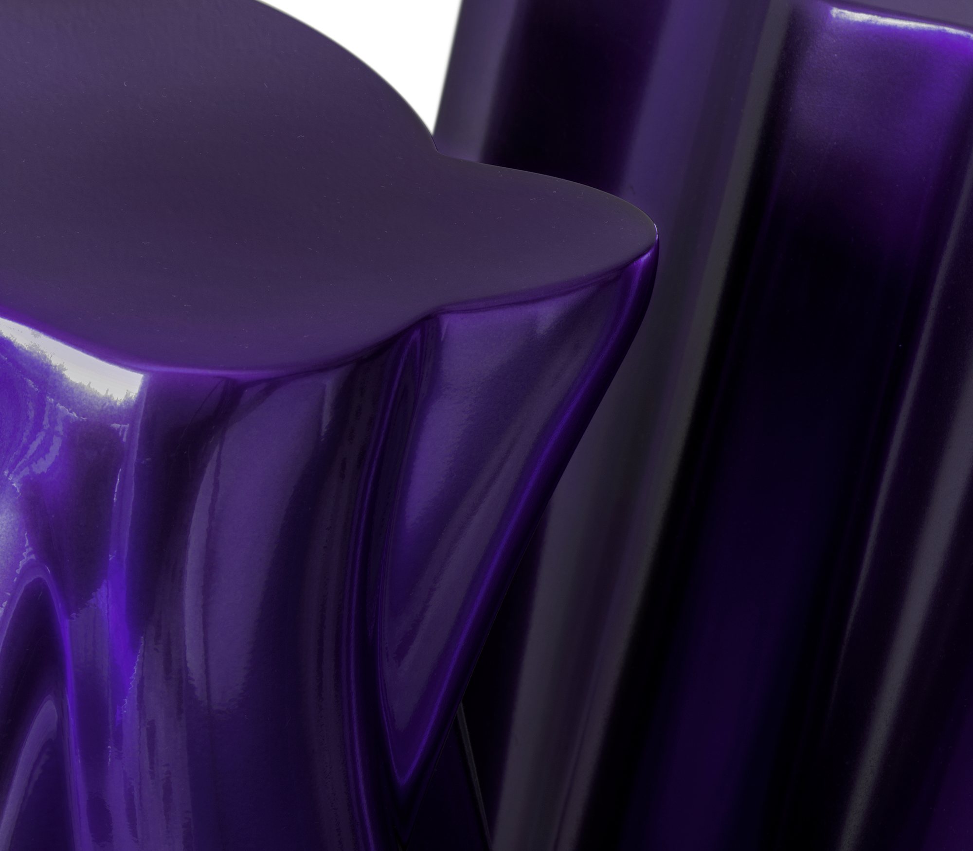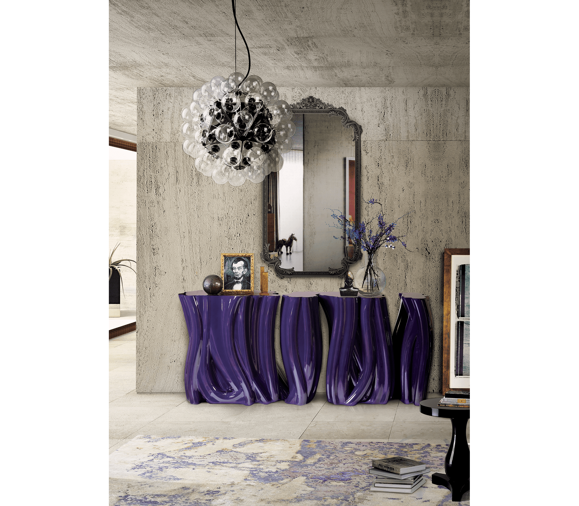 Carefully built from resin, the Monochrome is composed by three separate modules, featuring a unique and challenging design. Available in audacious purple or blue lacquer finish with a high gloss varnish coat, the avant-garde console conveys a seductive and fearless attitude.