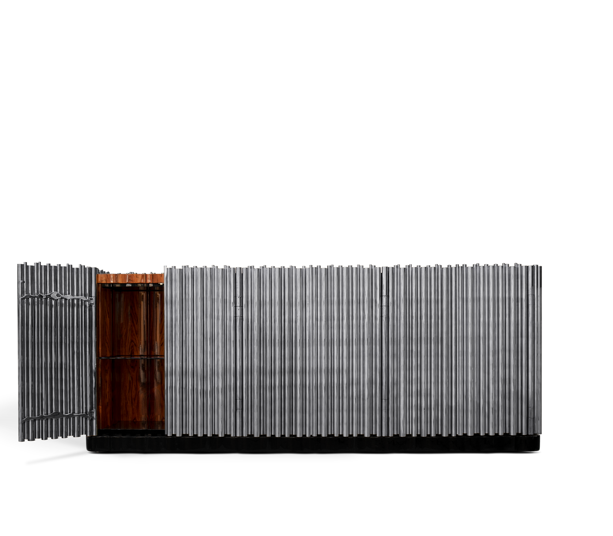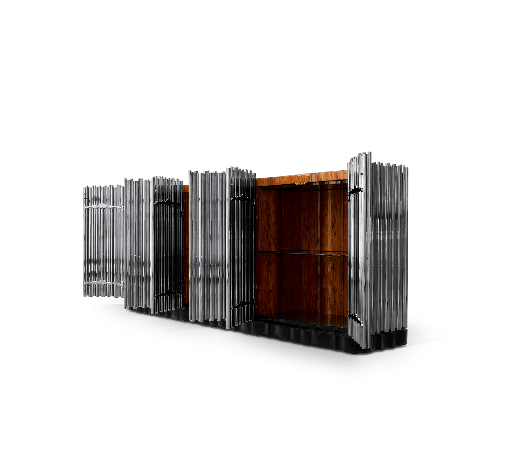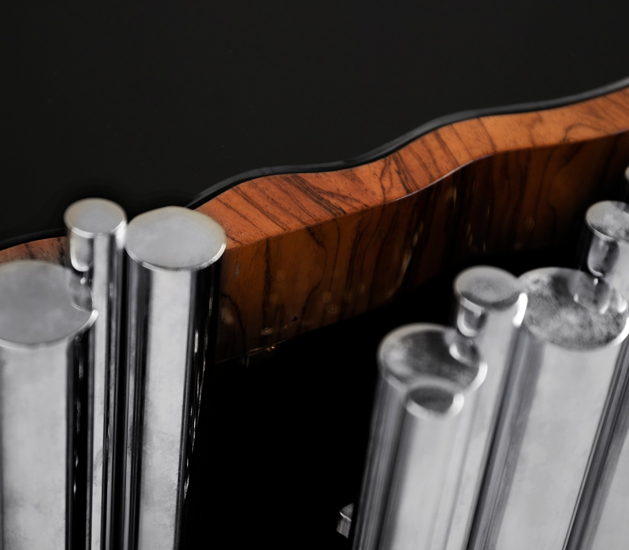 The Symphony sideboard is a statement piece whose modern design emulates the grandeur of classic church organ pipes. Synonym of innovation and flawless execution, the Symphony is one of the most exquisite pieces to grace the Limited Edition collection. It is methodically handcrafted by different master artisans, from specialized goldsmiths to the passionate wood carving craftsmen.
