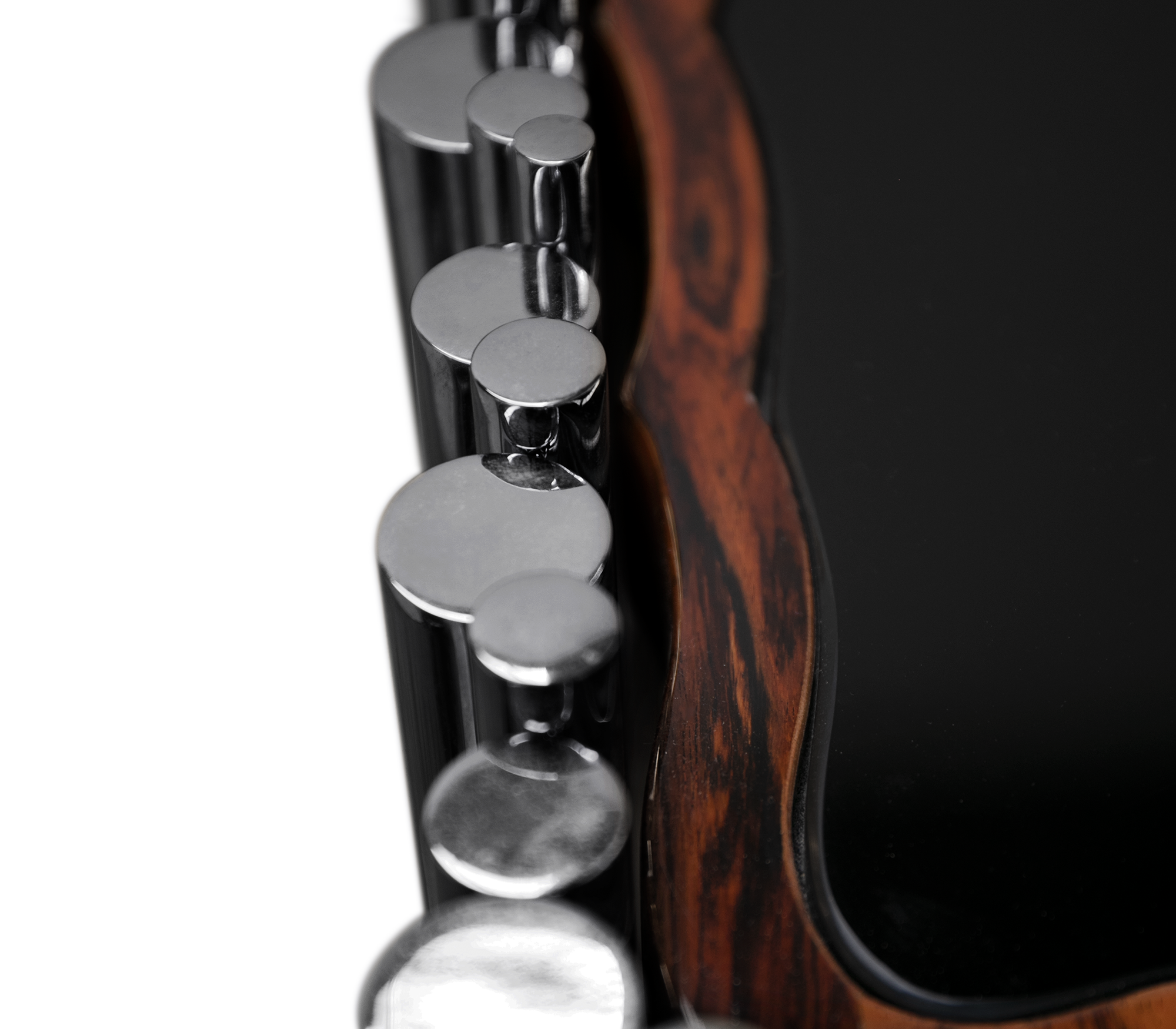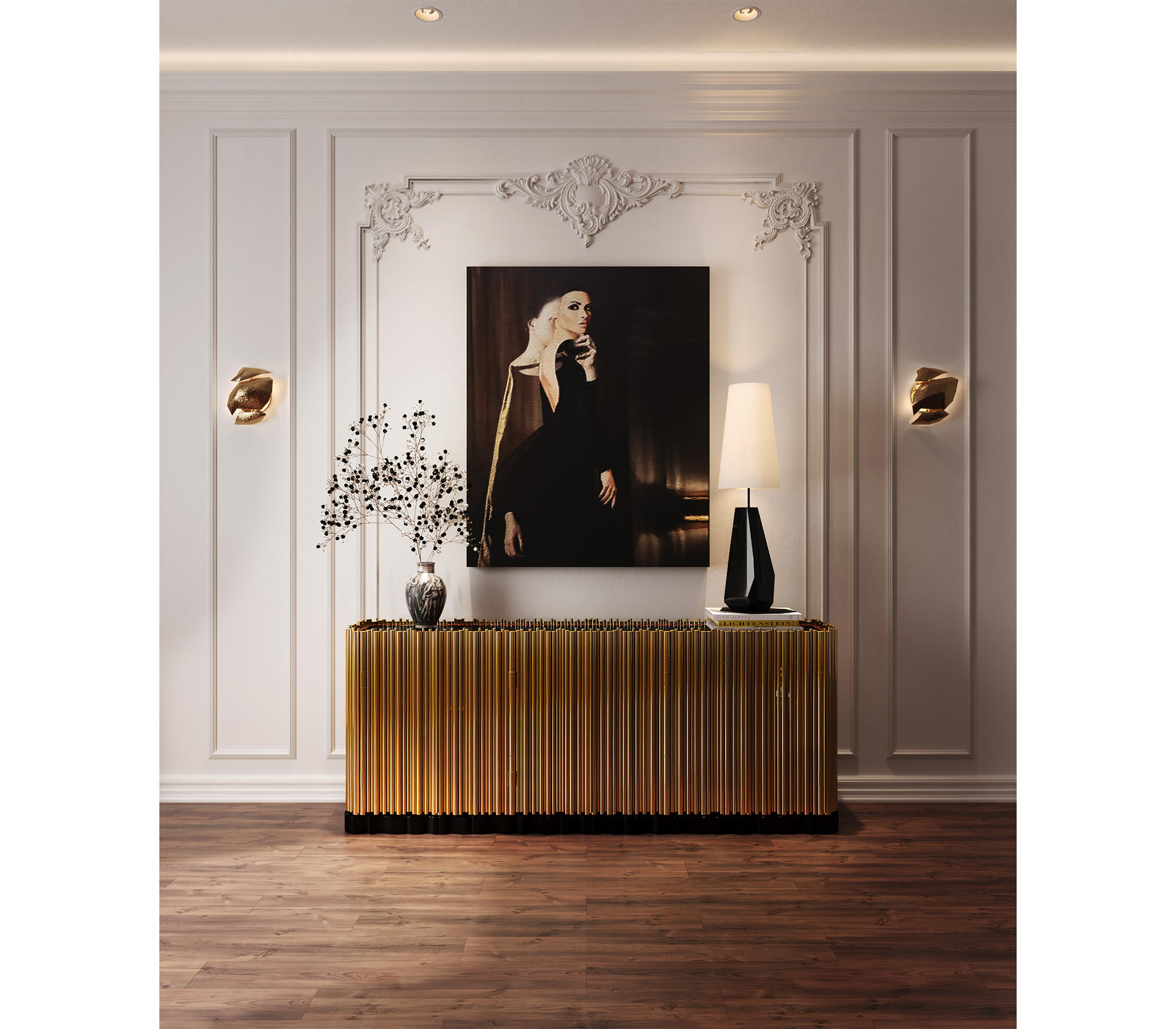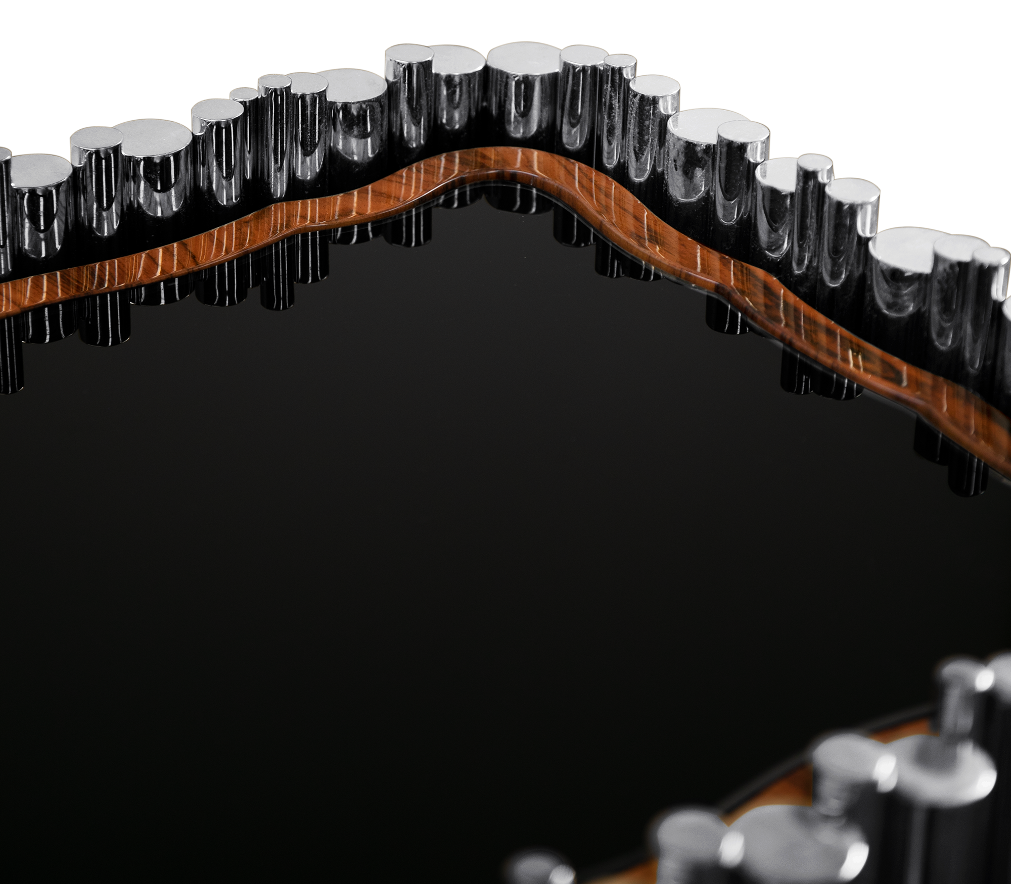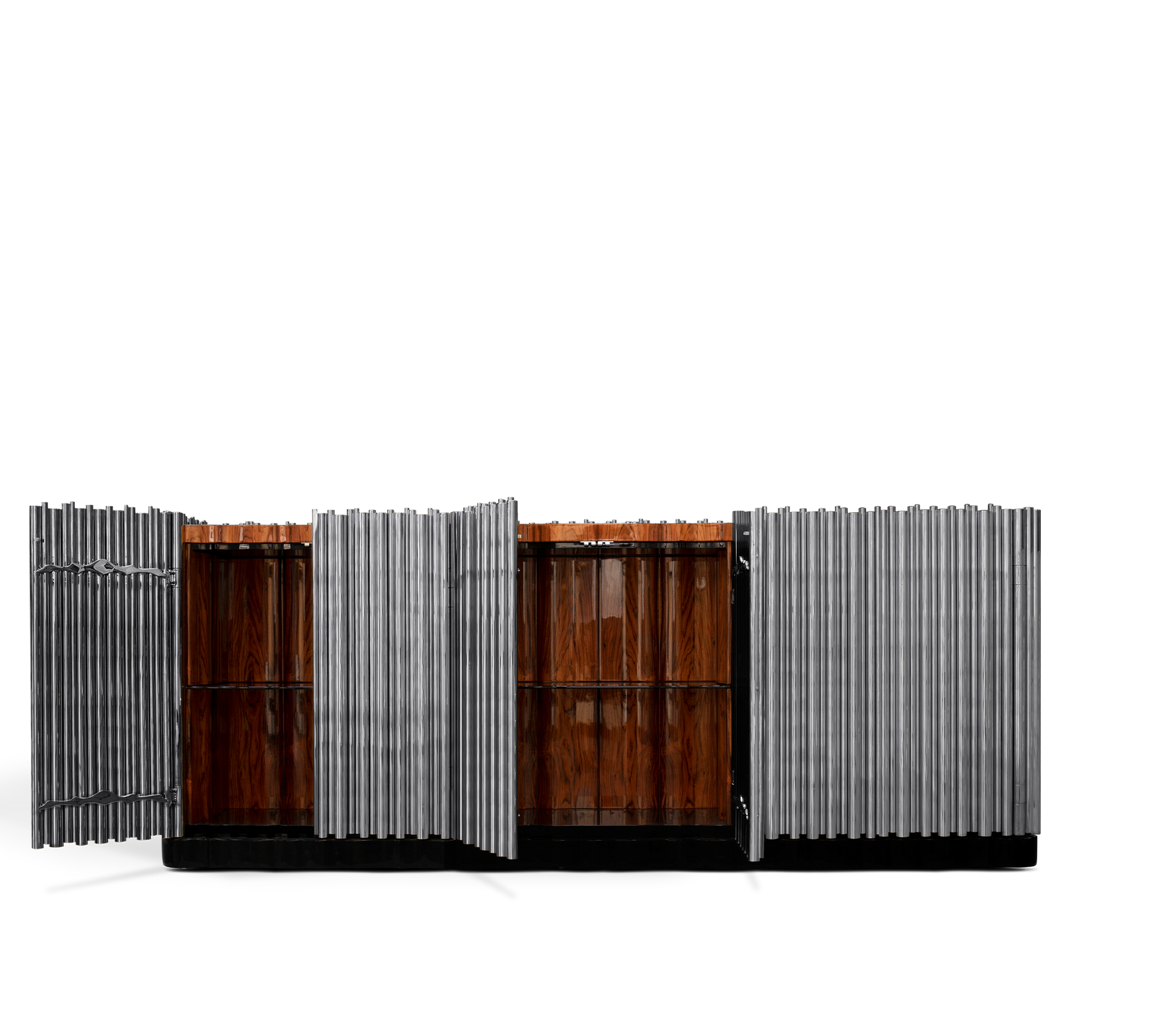 The Symphony sideboard is a statement piece whose modern design emulates the grandeur of classic church organ pipes. Synonym of innovation and flawless execution, the Symphony is one of the most exquisite pieces to grace the Limited Edition collection. It is methodically handcrafted by different master artisans, from specialized goldsmiths to the passionate wood carving craftsmen.