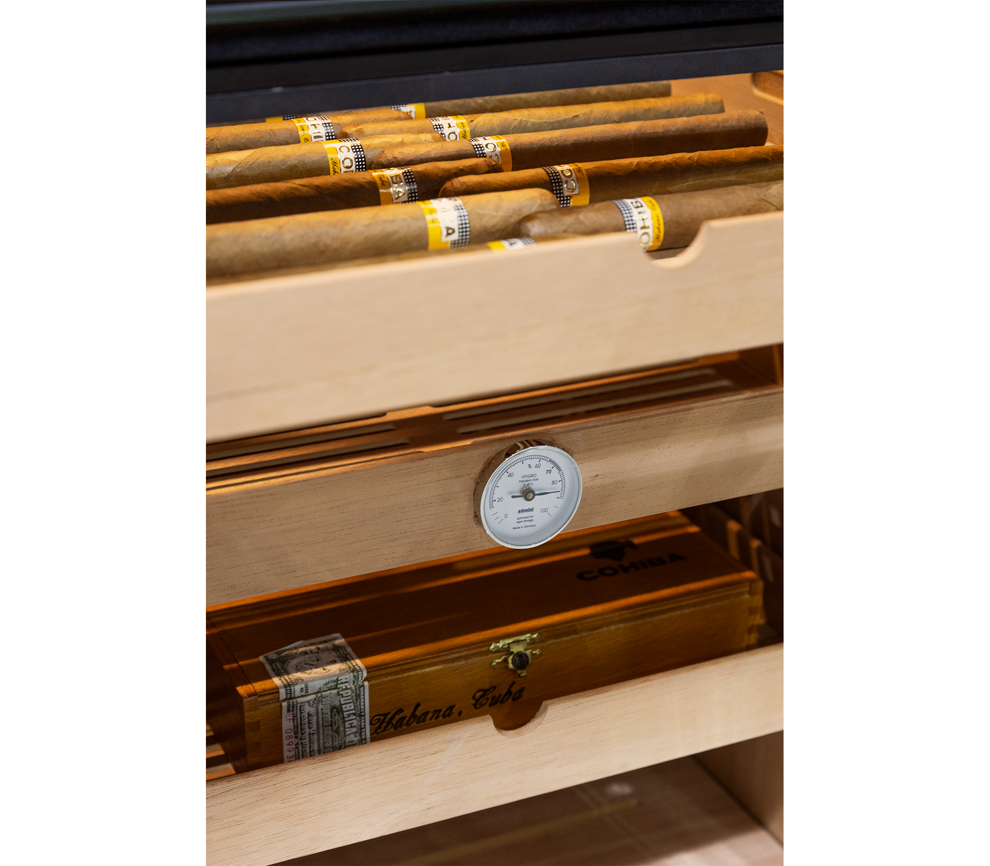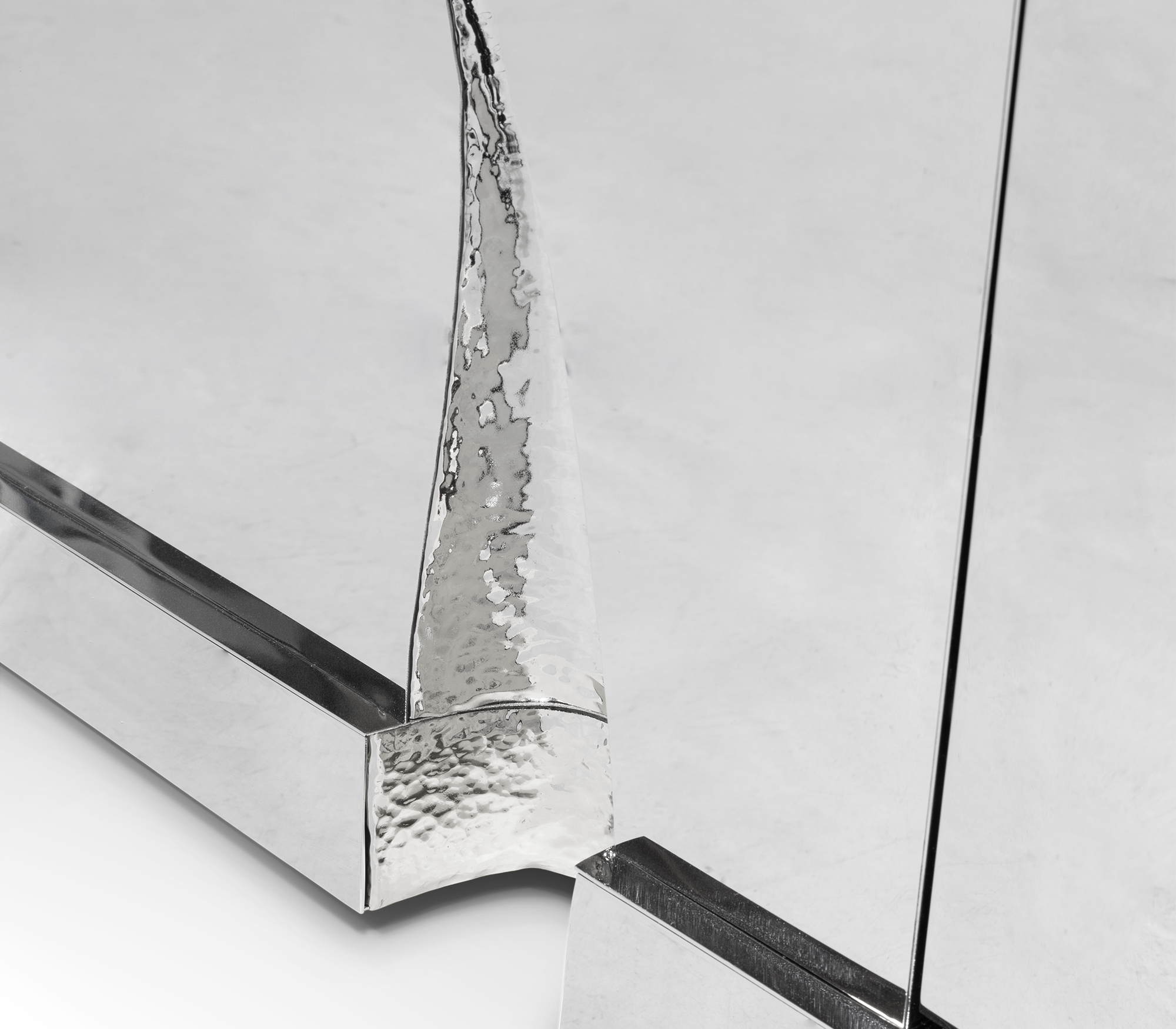 Influenced by the California Gold Rush, the Millionaire Safe is a statement piece designed to cause an impression. Built in a Mahogany structure and gold-plated polished brass frame with several dents, it sparks both interest and imagination reminding the vault robbery attempts in the old west. Nestled in a turned brass silver plated gear-wheel mechanism, an imposing safe handle obeys the will of is master through a secret dial lock combination. The overlay door makes room for an open space lined in velvet to keep liquors or other luxury lifestyle items, and a set of lockable drawers and door. Watch winders, shelves, an extra locking system and other features are able to customize.