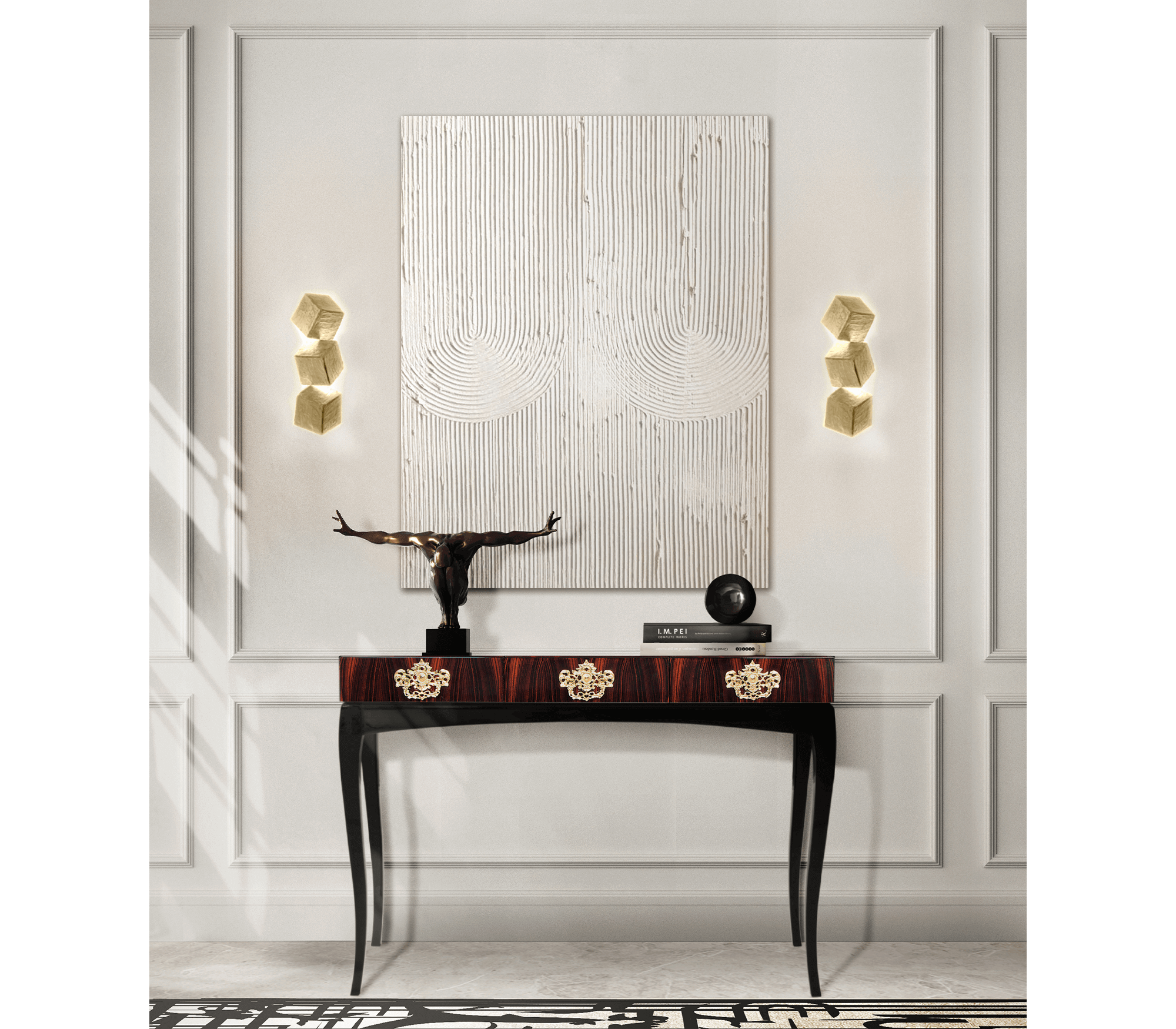 Trinity is a unique console that features remarkable detailing and style. Its beautiful lines make it a perfect fit in any modern house and every room setting. It offers you a distinct style and presence with a luxury design.